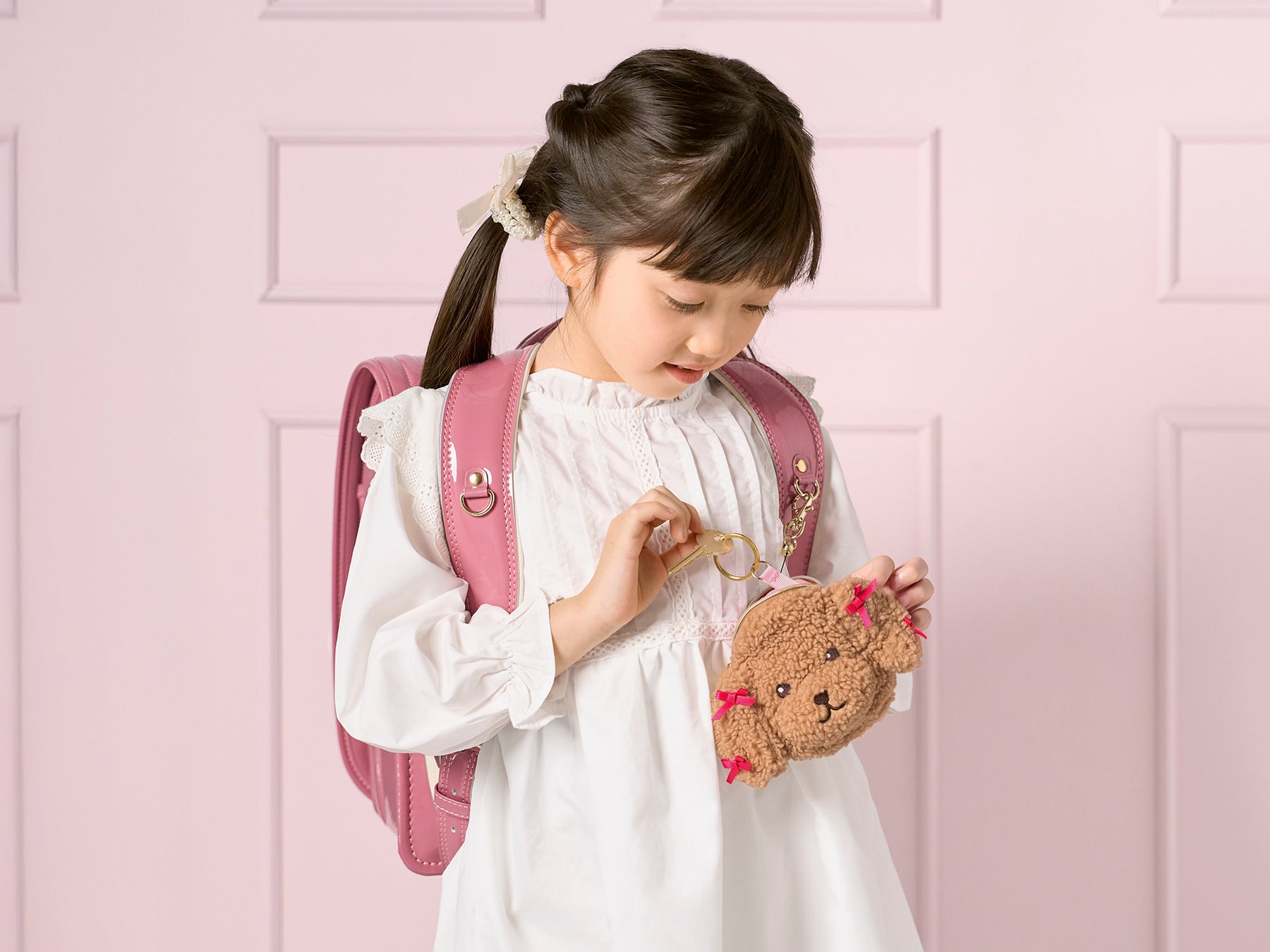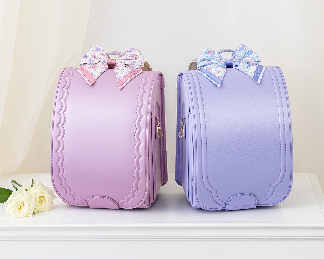 大好評につき既存の2種類に加え、ペルルとボンボンを柄のなかにちりばめた、アイボリーとブルーの2色を新たに展開します。毎日の通学をおしゃれに楽しめるアイテムは、これからランドセル選びを始めるお子さまにも、新学期に向けてスクールアイテムを新調したいお子さまにもおすすめです。