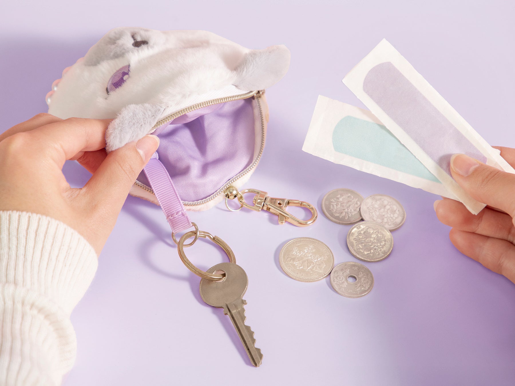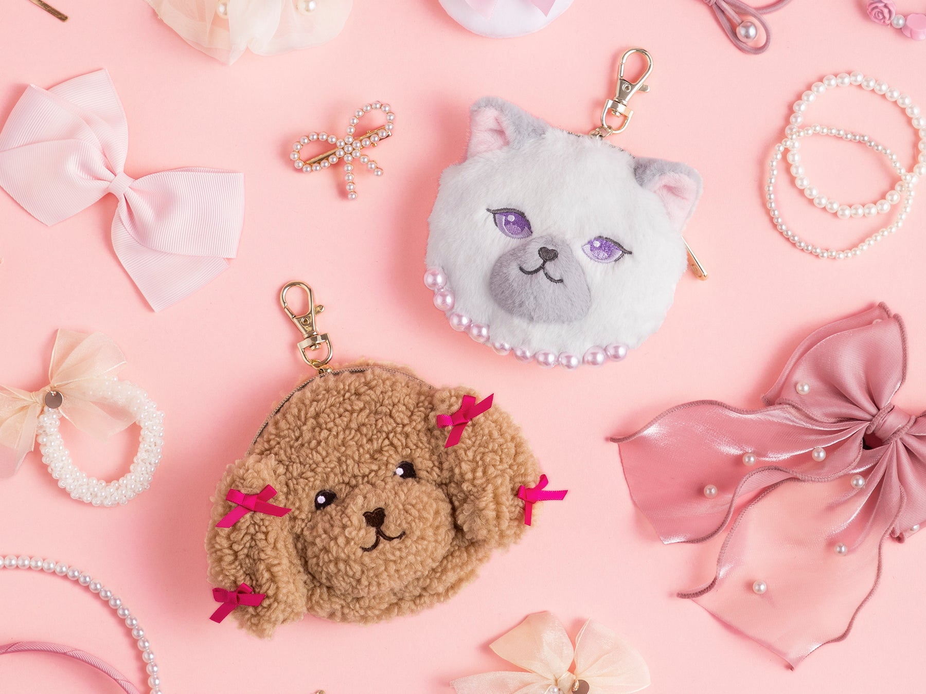今回初登場アイテムとなるのは、ペルルとボンボンの顔をモチーフにしたパスケース。取り外しが簡単なフック式金具(カニカン)付きのほか、ファスナー付きポーチにもなっており、交通系ICカードをはじめ、ちょっとした小物や鍵なども収納が可能な可愛くて機能的なアイテムです。