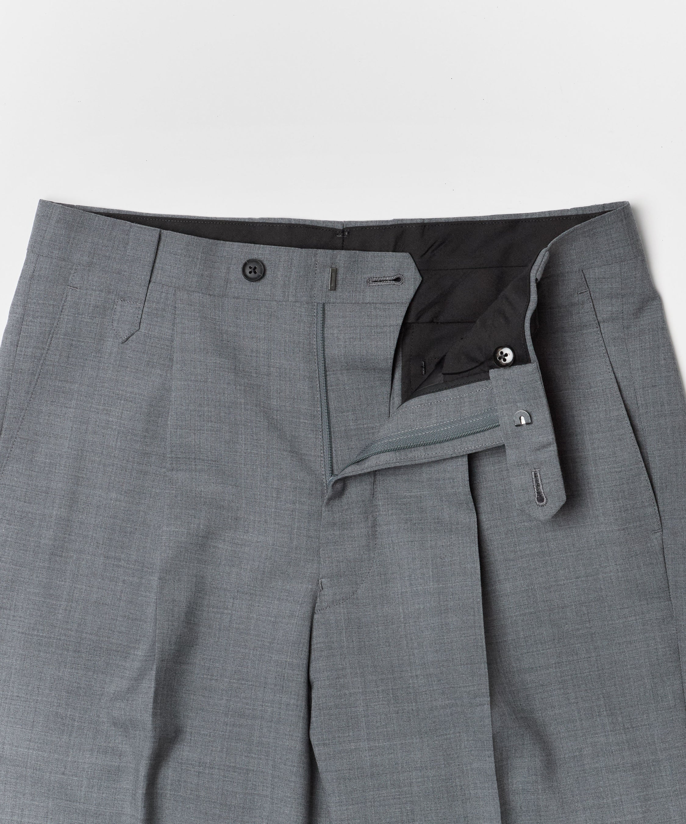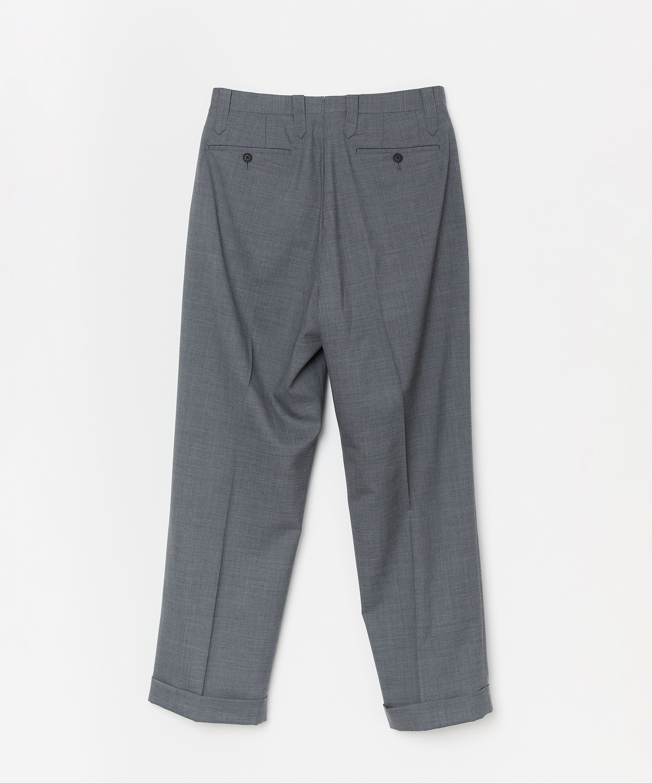 1960年代のイギリス軍のNo.2ドレスパンツをベースに製作したドレスワイドパンツ「セントアイブス」。印象的なベルトループなど原型にあるミリタリーディテールを継承しつつ、四方さんの考える理想的なシルエットや、ドレスディテールを融合。ドレスパンツのような立体的な美しさと穿きやすさを兼備した、大人も穿ける魅力的な仕上がりのワイドパンツです。
