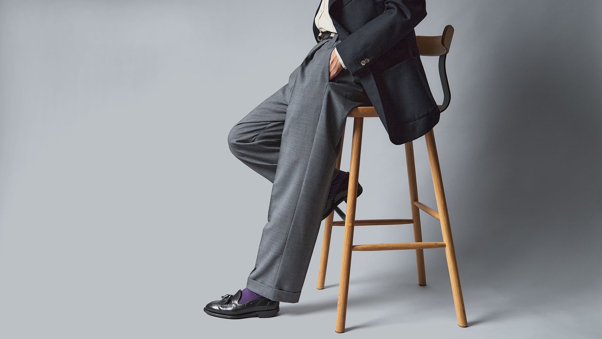 今回のドレスワイドパンツ「セントアイヴス」の生地にはSuper100’sのウールトロピカルを採用。しなやかで高級感のあるドレープが特徴で実用性も高い素材です。今回も引き続きディレクションはスタイリスト四方章敬さんに担当いただきました。