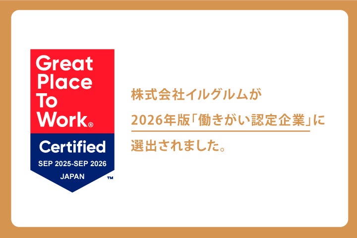 株式会社イルグルム(本社:大阪府大阪市北区 代表取締役:岩田 進、以下「イルグルム」)は、Great Place to Work® Institute Japan(以下、GPTWジャパン)が実施する2026年版「働きがいのある会社」認定において「働きがい認定企業」に選出されたことをお知らせします。これは働く人へのアンケートの結果を基に、優れた職場文化に基づいた「働きがいのある会社」であることを Great Place to Work® Institute Japan が正式に認定するものです。