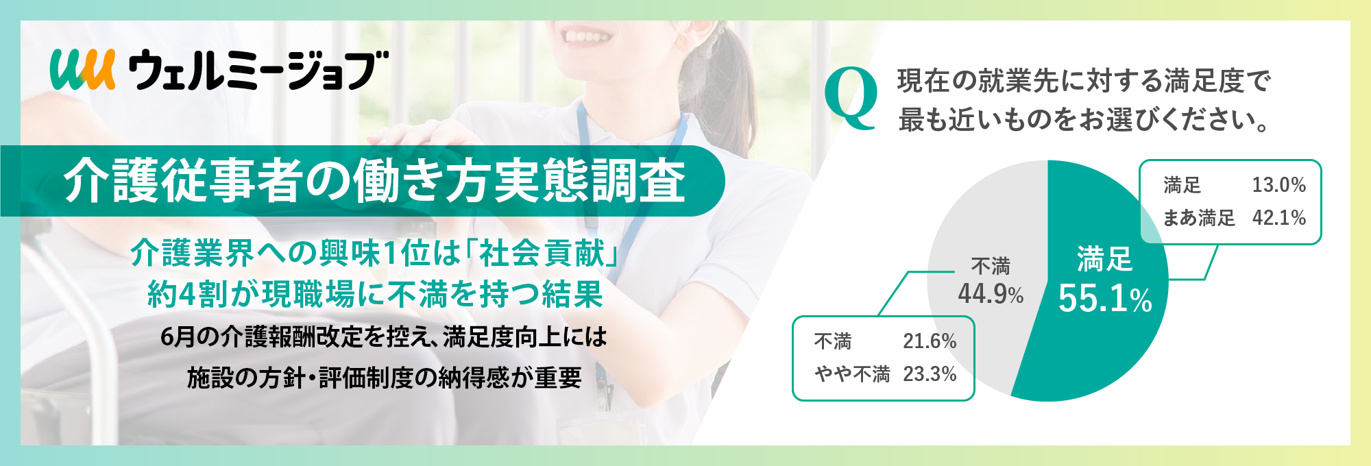 株式会社エス・エム・エス(本社:東京都港区、代表取締役社長:髙畑正樹、東証プライム、以下「当社」)が運営する介護・医療・障害福祉・保育の求人サイト「ウェルミージョブ」(URL:https://www.kaigojob.com/)は、全国の介護従事者570名を対象に実態調査を実施しました。本調査は、6月の介護報酬の臨時改定など、介護事業者を取り巻く環境が変化するなかでの対応検討への一助を目的としています。その調査結果をお知らせします。