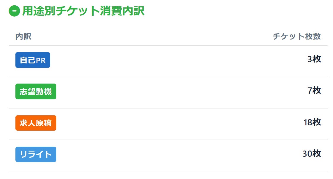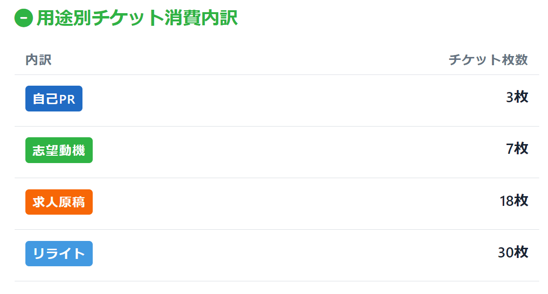 下記4種の用途別にチケット消費の内訳を管理画面上で確認できるように仕様変更を行いました。