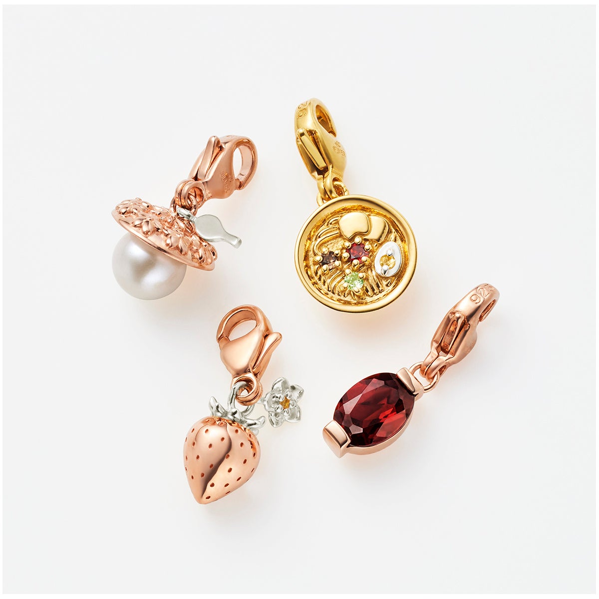 先行で発売。いちご、豚骨ラーメン、博多どんたくの花笠、提灯など、博多を象徴するモチーフを繊細なジュエリーに仕立てました。この場所でしか出会えない、特別なご当地チャームをぜひ店頭でご覧ください。