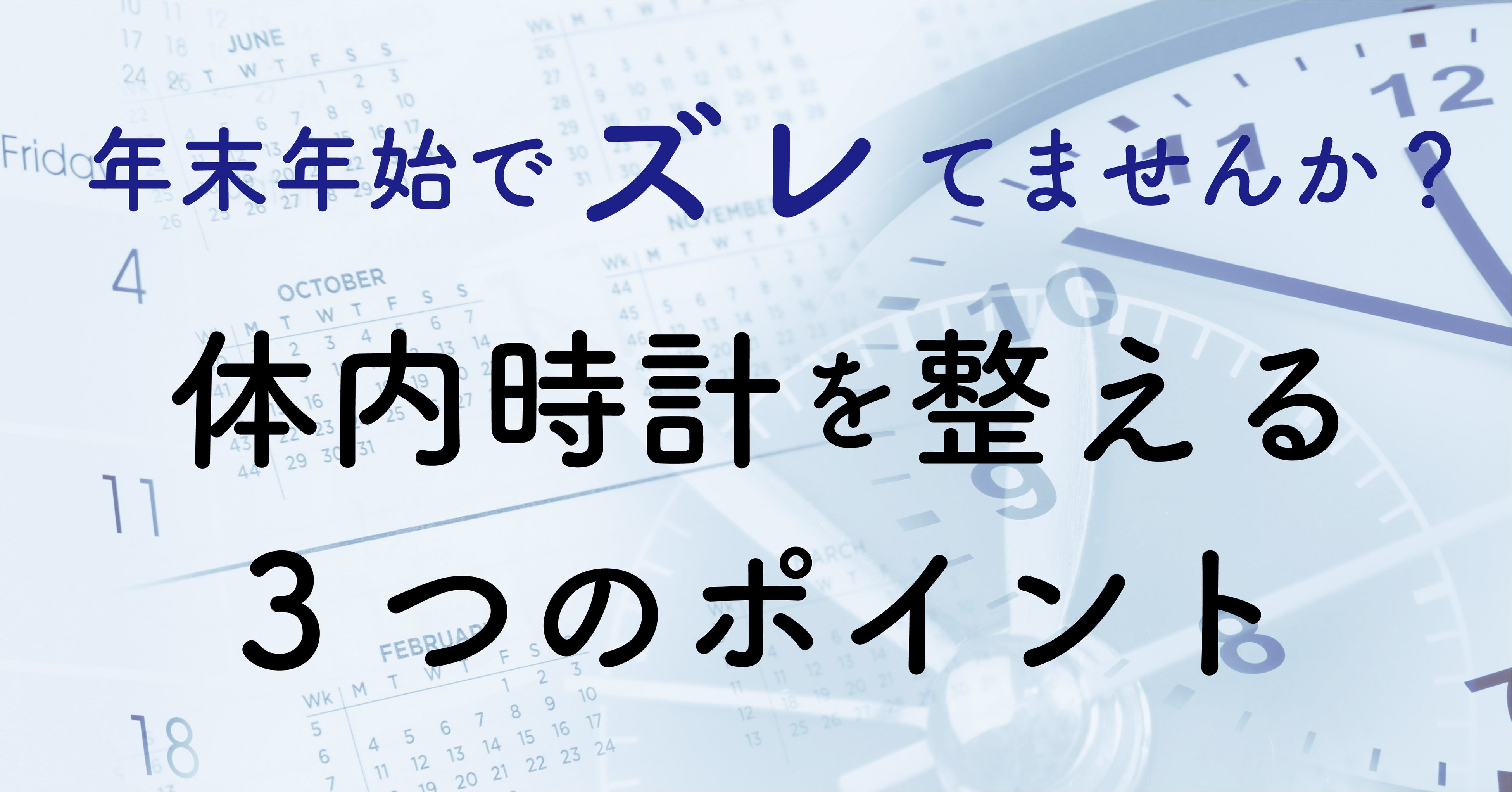 これらのポイントを実践することで、体内時計を整え、新しい年を健康的かつスッキリとした状態で迎えることができます。より良い一年にするためにも、是非、実践してみてくださいね。