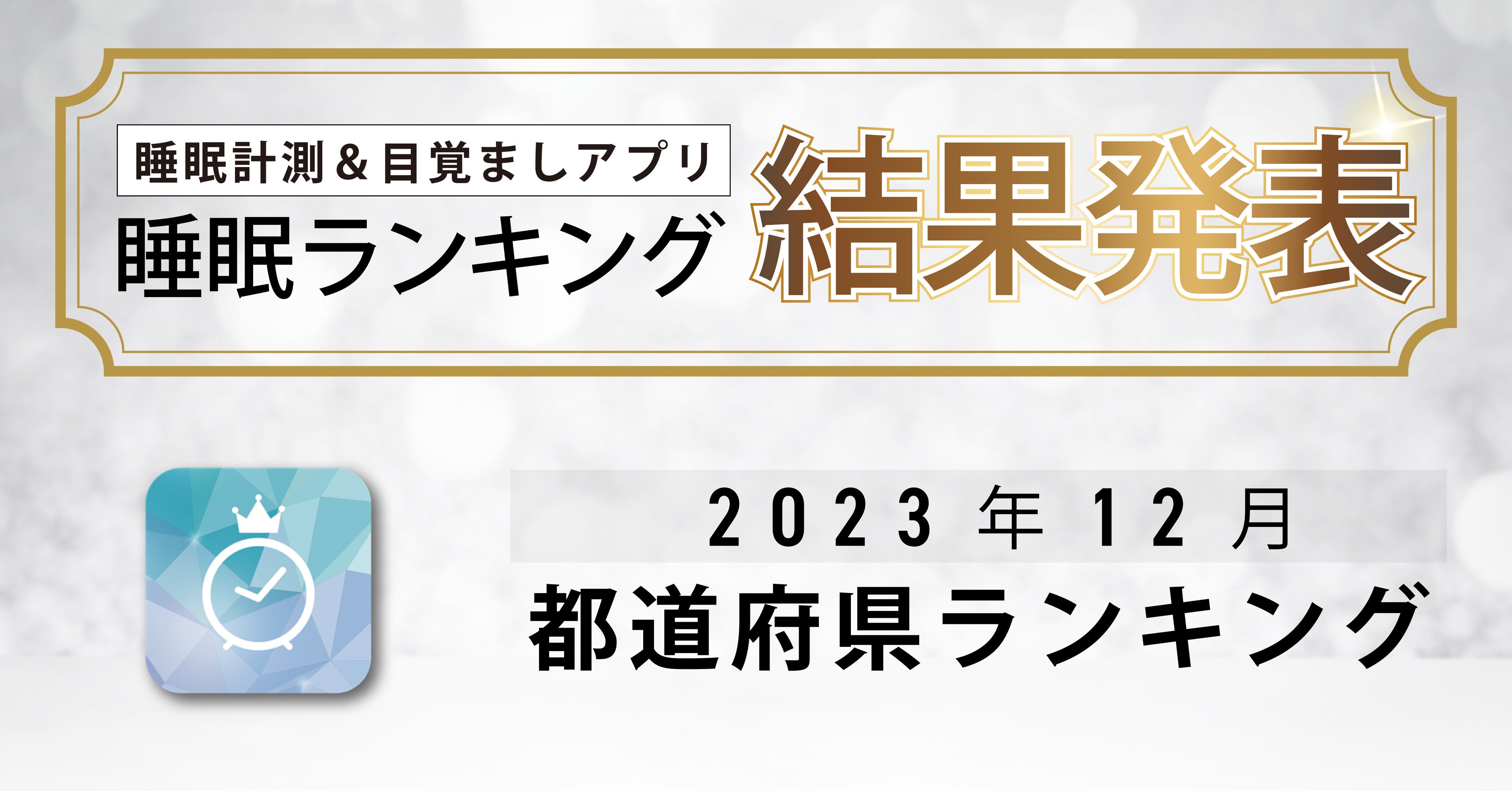 2023年12月1日~12月31日における「睡眠ランキング」の都道府県ランキングを発表します。