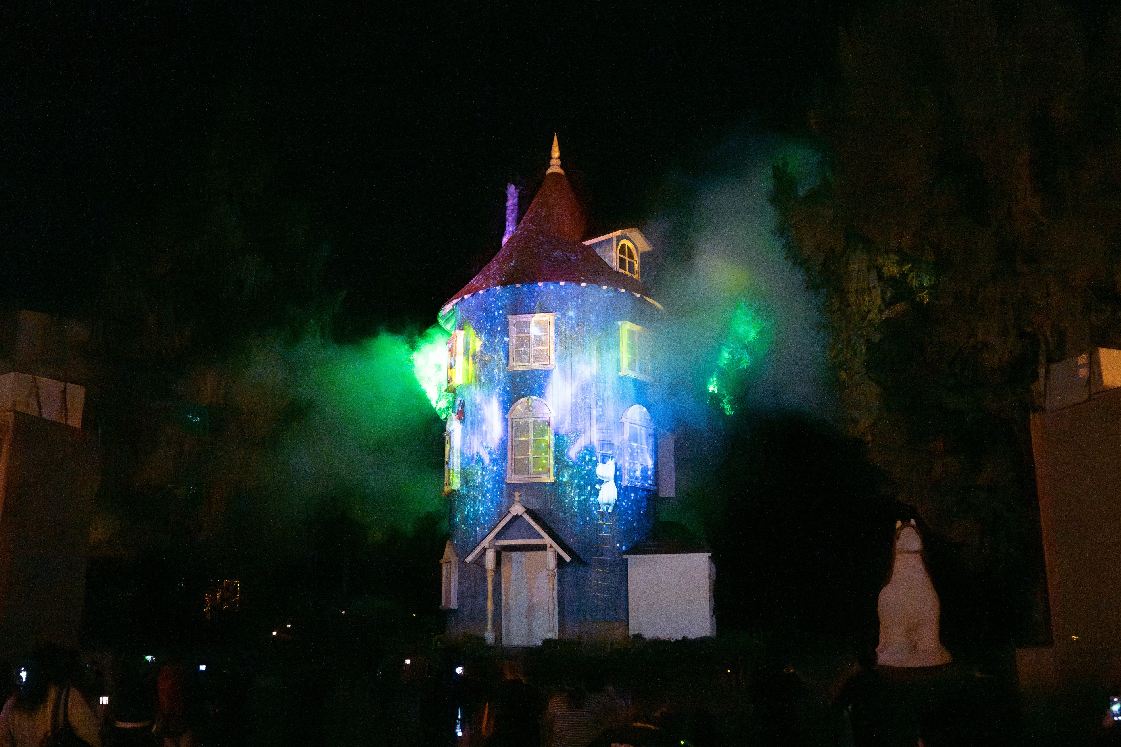 さらに、日が落ちてからはライトアップやプロジェクションマッピングなどの光の演出が加わり、昼間とは違った顔をのぞかせます。美しいライトアップはもちろんのこと、昨年好評だったナイトパレードがバージョンアップ!ムーミンバレーパークを訪れる人々を幻想的なクリスマスの世界へと誘います。冬の湖上花火大会も開催。昼と夜で別の楽しみ方を提供するムーミンバレーパークのクリスマスをお楽しみください。