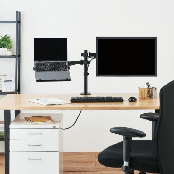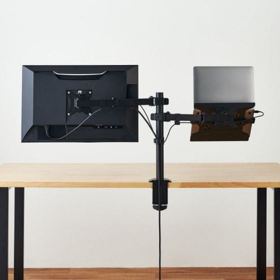 - 液晶ディスプレイとノートパソコンを設置できるダブルアームのロングタイプ(DPA-DL04BK)
