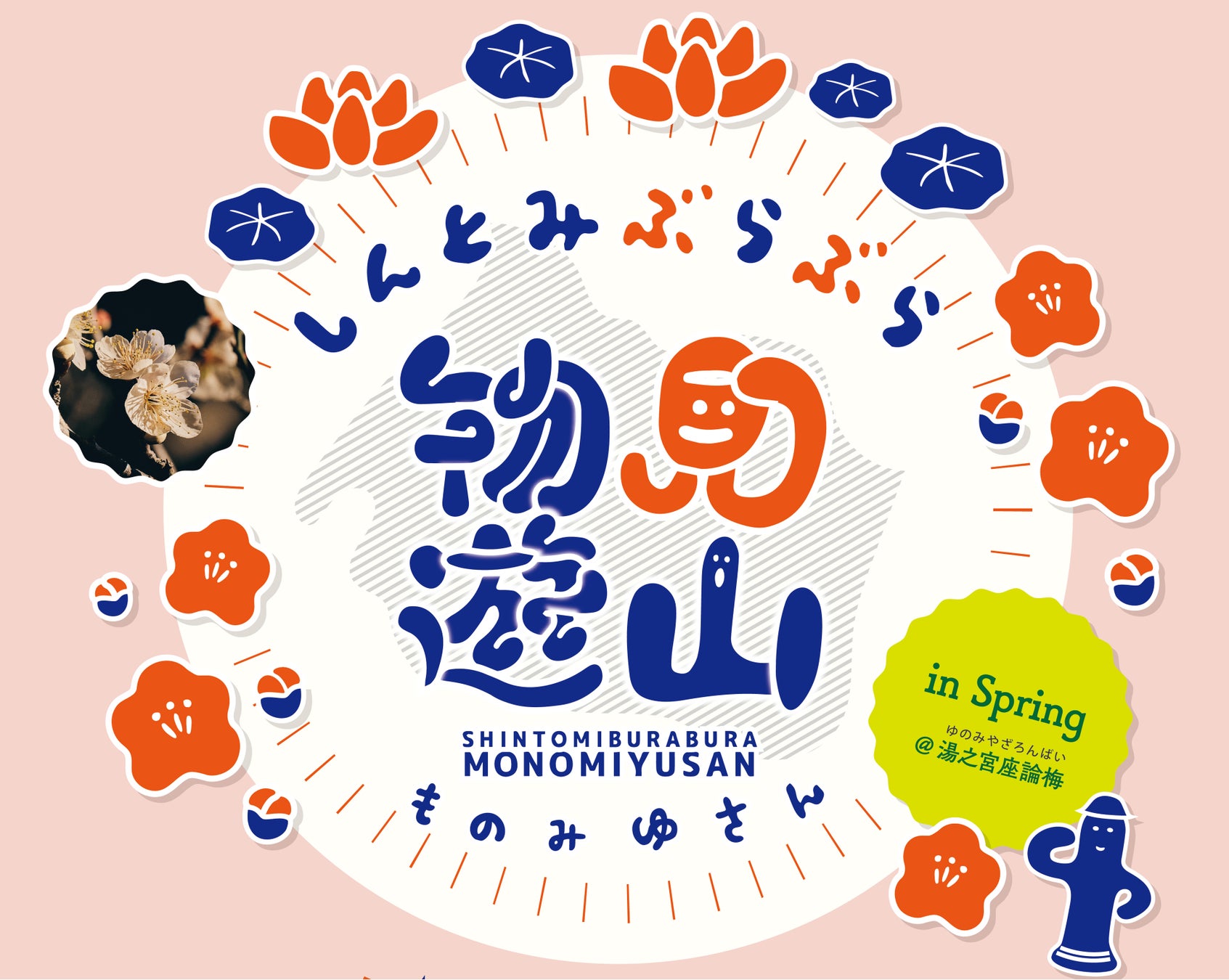昨年までは「座論梅 梅の花まつり」として開催していましたが、開催60年を迎える今年から、イベント名を「物見遊山(ものみゆさん)」に変更。町内の他の花を楽しむイベント(ハス、ソバ)も名前を統一して、年間を通して新富町にお越しいただけるイベントとしてご案内しています。