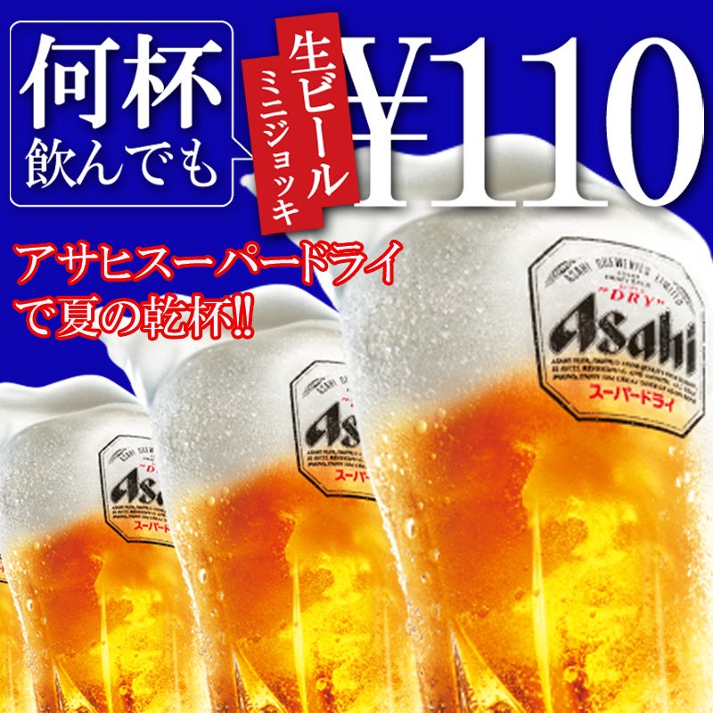 夏の生ビール祭!!何杯飲んでも生ビールミニジョッキ110円キャンペーン♪