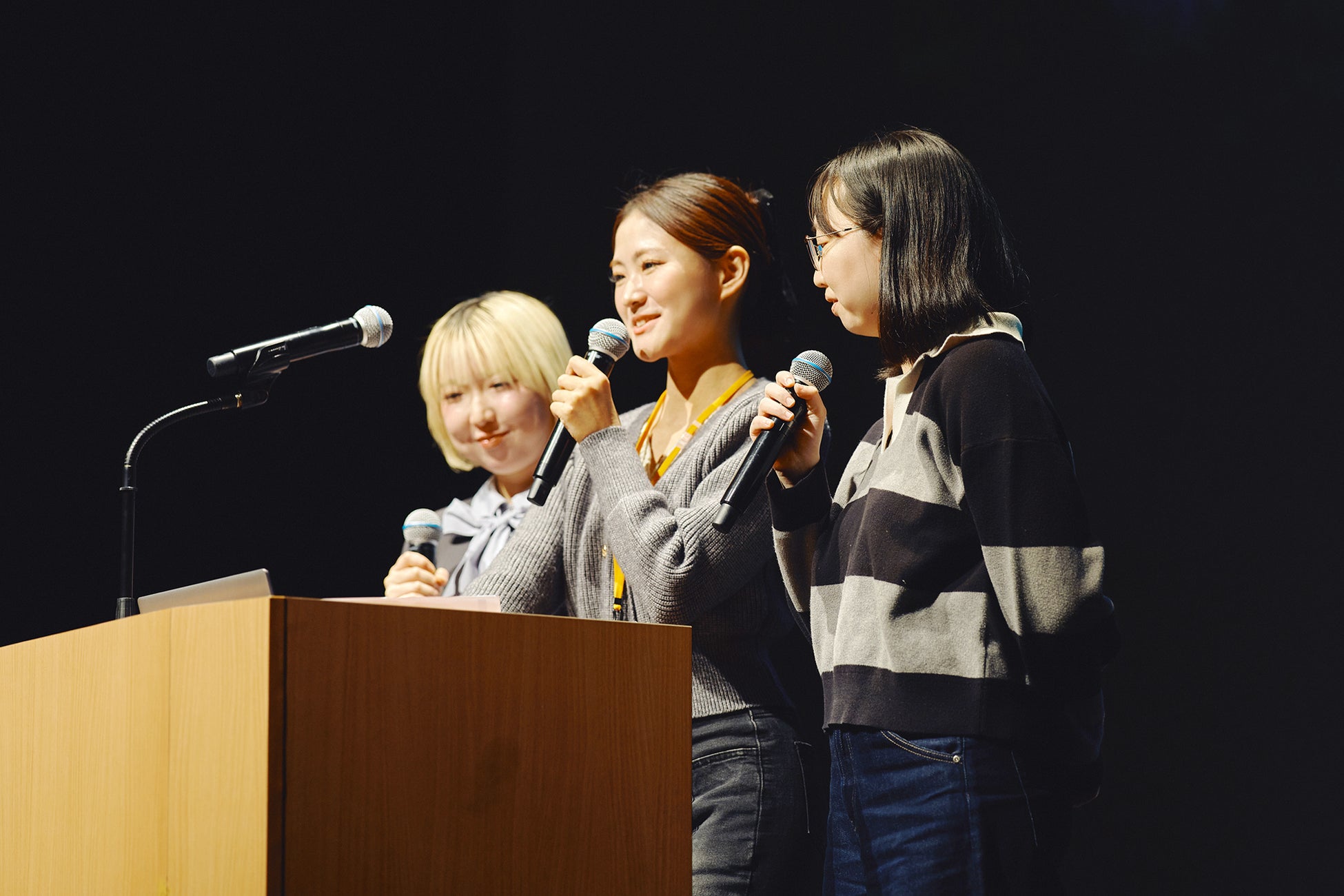 ▼内容:1年間の活動を5分に凝縮し報告。新入生歓迎会やクリスマスなど季節に合わせたイベントから、地域行事への参加まで、寮生活をより有意義な時間にするための施策を発表しました。なかでも、KU ROKKO HOUSEは、オリジナルで作成したルールブックにフォーカスし、人気ゲームになぞらえて発表しました。立ちはだかる問題に対して、ルールブックを通して不明点を明確にすることで、寮生の不安や疑問を解消したことを報告しました。
