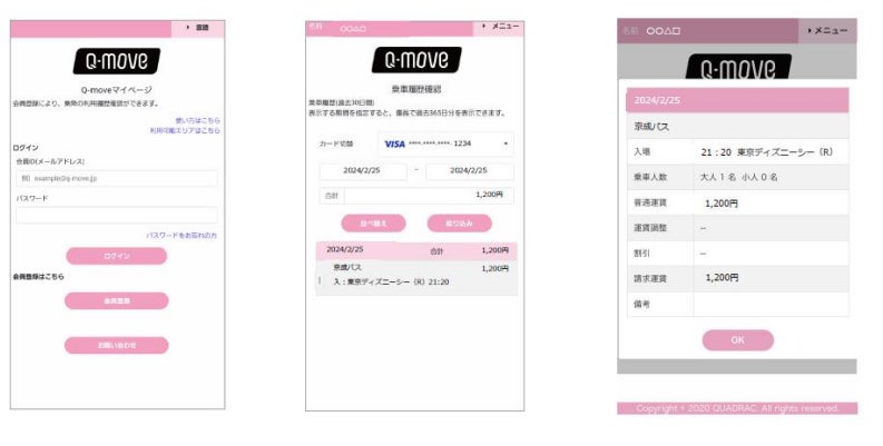 交通事業者向け決済及び認証のプラットフォームを提供する QUADRAC株式会社 の Q-move サイト( https://q-move.info/ )にアクセスいただき、「マイページ」の会員登録手続きの後ご確認いただけます。