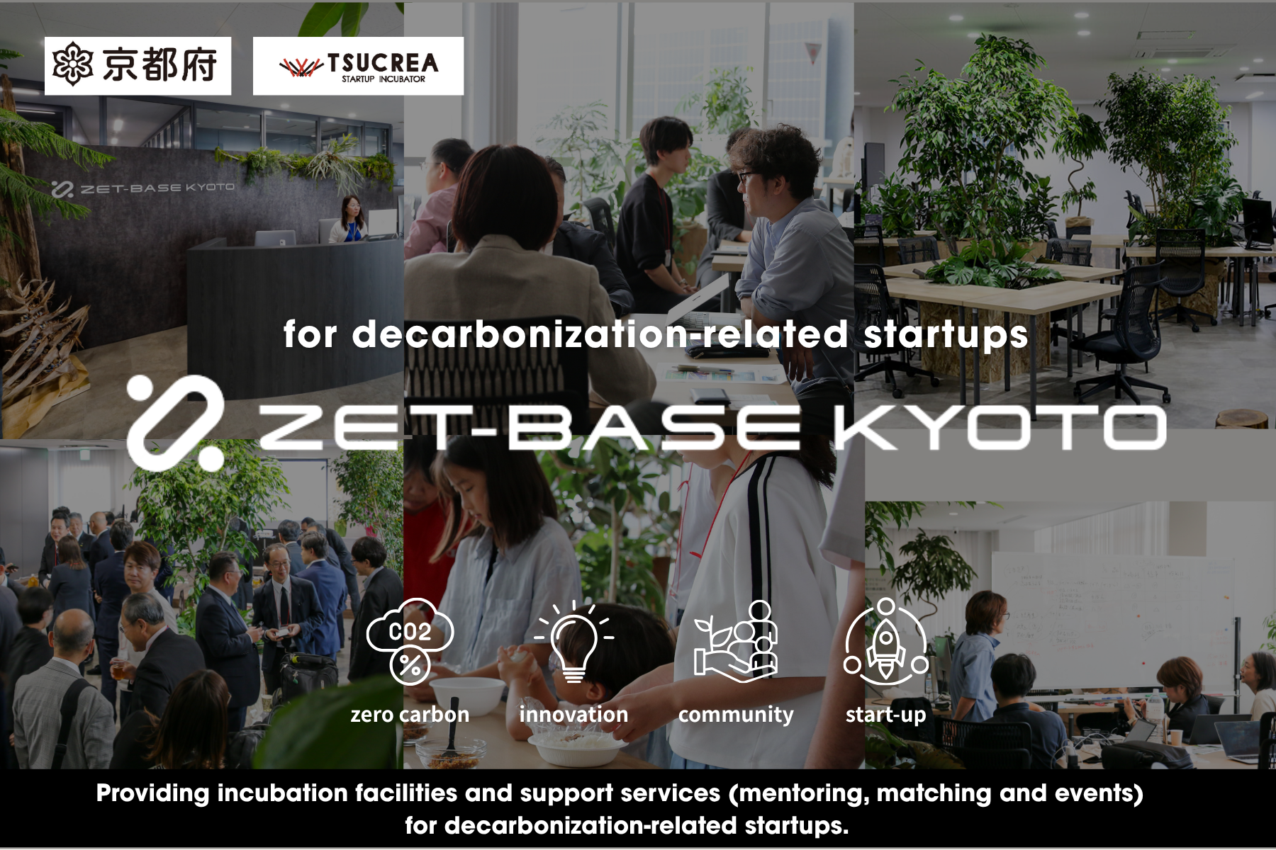 ZET-BASE KYOTOは、2025年4月に京都府向日市・JR向日町駅前に開設された、脱炭素に挑むスタートアップを支援するスタートアップ支援拠点です。「Zero Emission Technology」を軸に、企業・大学・行政・市民が連携し、研究開発から実証・事業化までを支援。脱炭素テクノロジー分野における新たな産業創出と地域共創を目指しています。
