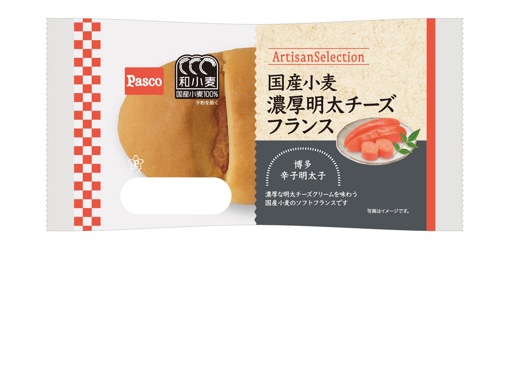 国産小麦の小麦粉を100%使用した(手粉を除く)ソフトフランスパン生地で、博多辛子明太子を使用した濃厚な味わいの明太チーズクリームを包み、切れ目を入れて焼き上げました。
