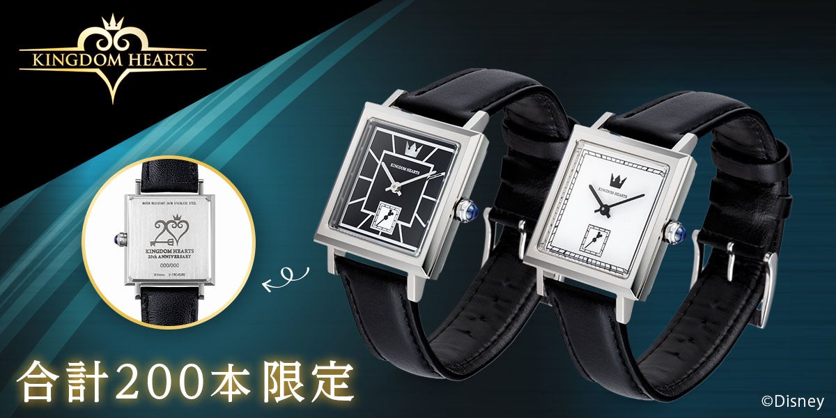 「キングダム ハーツ」スクエア腕時計2種類。20周年記念 ブラック&ホワイト合計200本数量限定。シリアルナンバー刻印 8月15日(月)まで予約受付