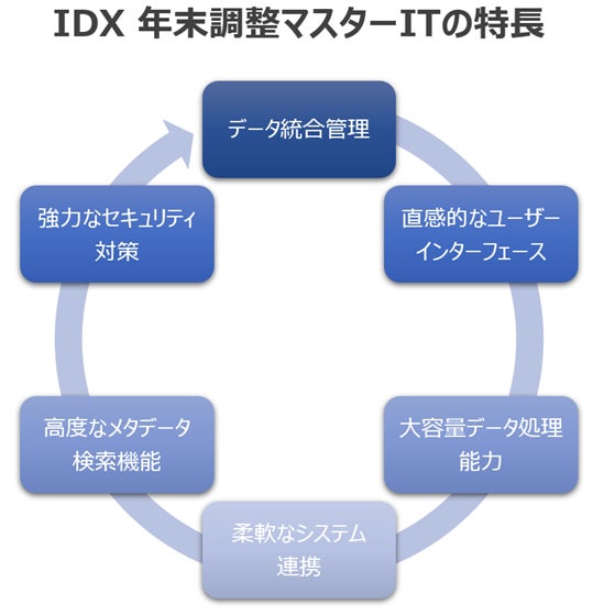 これらの特徴により、「IDX 年末調整マスターIT」は、IT企業の年末調整業務を効率化し、精度と信頼性を高めるサポートを提供します。