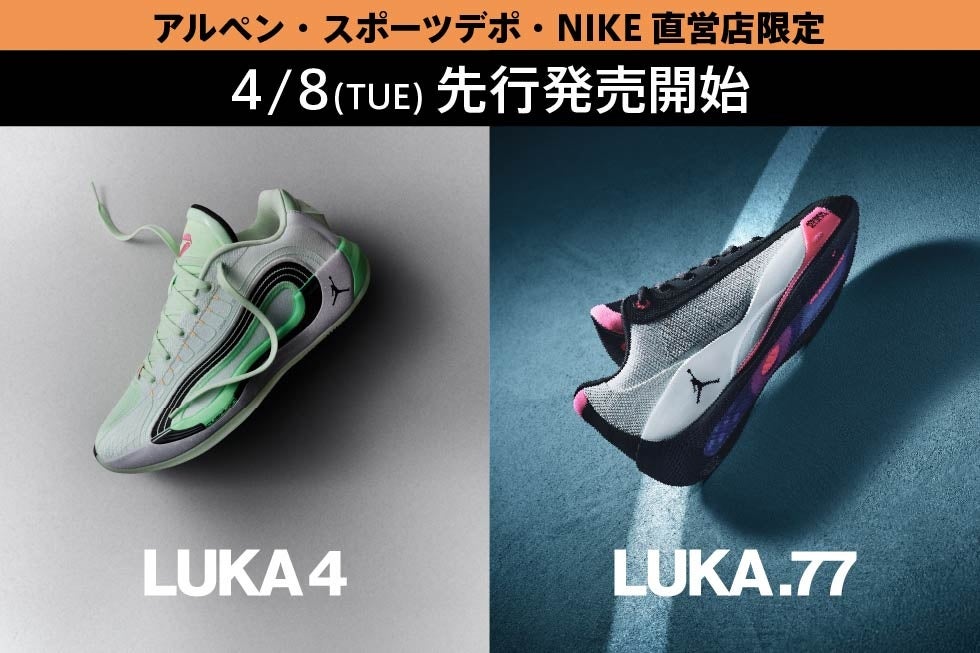 スポーツ用品販売の株式会社アルペン(本社:愛知県名古屋市、代表取締役社長:水野敦之)は、全国のスポーツデポ・アルペン156店舗にて、4月8日(火)~4月14日(月) の期間、JORDAN ルカ4、ルカ.77の先行販売(ファーストアクセス)を実施いたします。また、アルペングループ店舗限定の購入特典として、抽選で東海大学男子バスケットボール部元HC 陸川章氏とバスケYouTuber ともやん氏によるスペシャルクリニックへご招待いたします。