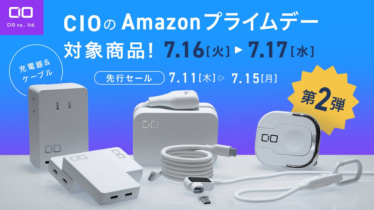 小型・高出力のモバイルバッテリー「SMARTCOBY」シリーズや、小型のGaN急速充電器「NovaPort」シリーズなどの各種充電機器を展開する株式会社CIOは、2024年度Amazon プライムデーに向け、同社主力をAmazon プライムデー特別価格にて販売いたします。