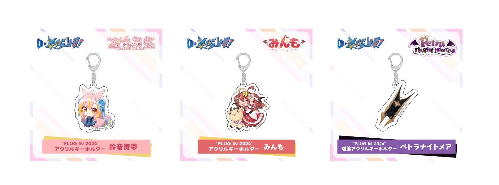 2024年11月に開催したRIONECTION主催のライブ&1on1イベント『PLUG IN!! 2024.11 presented by RIONECTION』に出演した「すず音」「鈴音舞夢」「尖苅せにゃ」「みんも」「恋沼ミヤ」「ペトラナイトメア」のイベントオリジナルグッズを、公式ECサイトで販売開始いたしました。