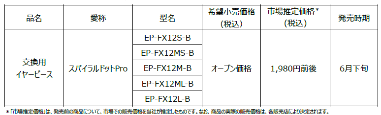 交換用イヤーピース「EP-FX12」を5サイズで発売