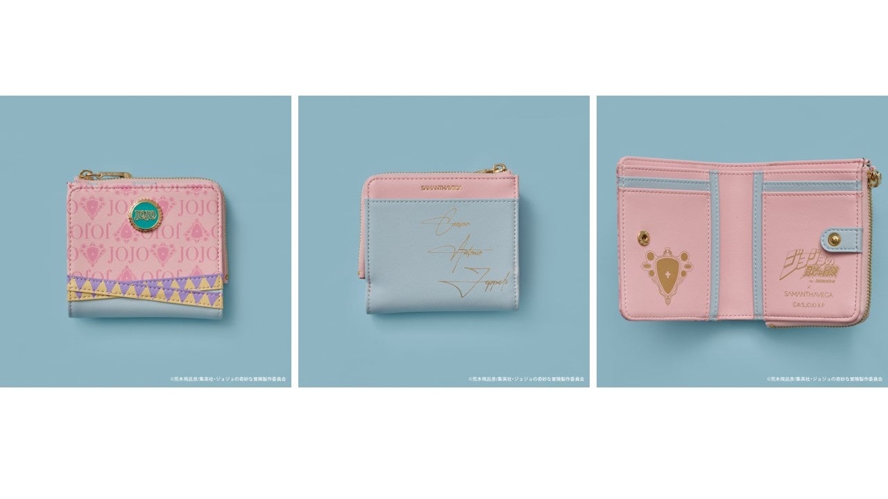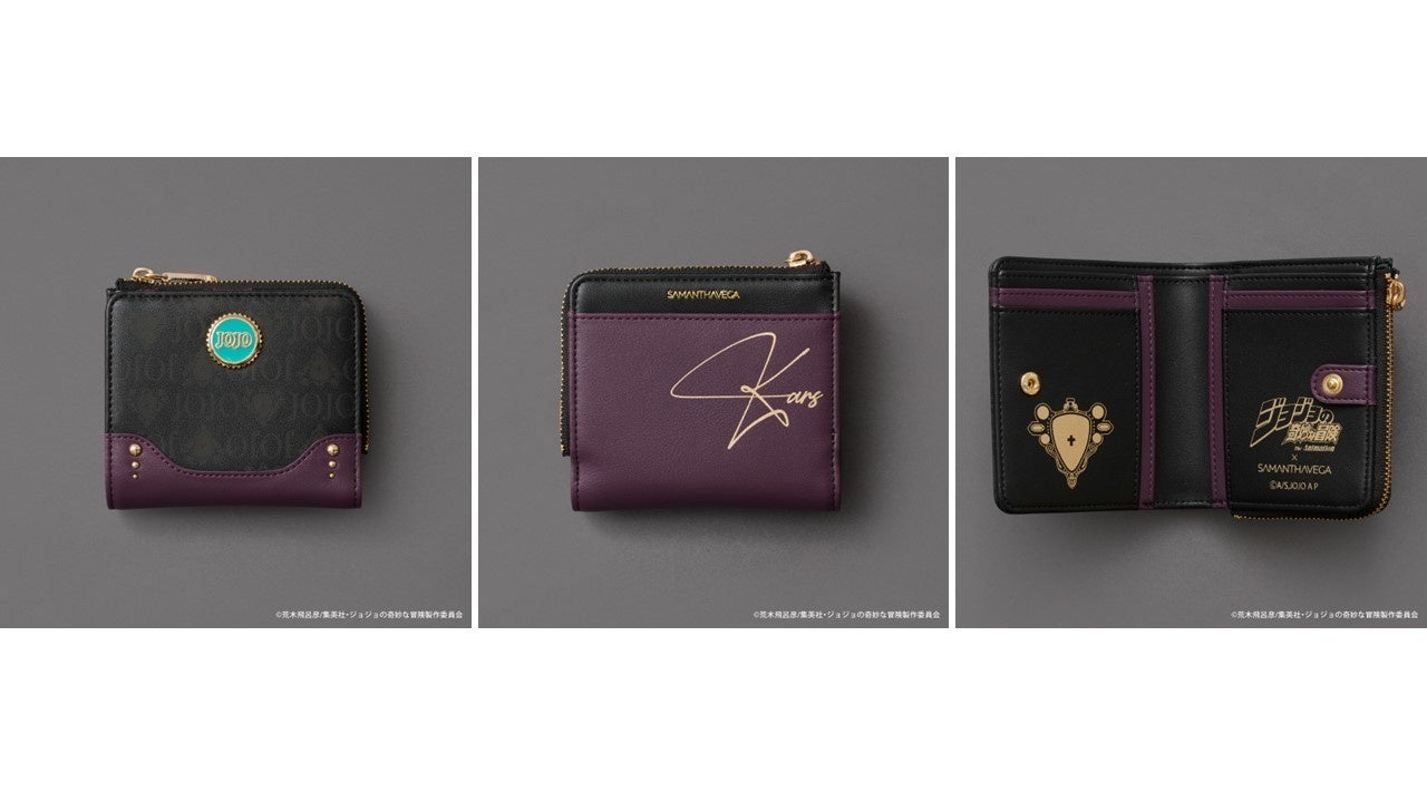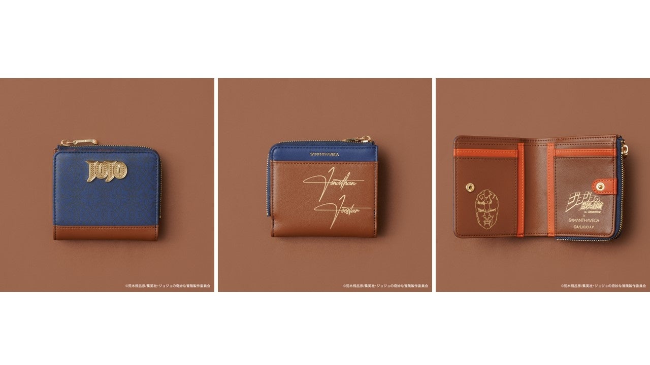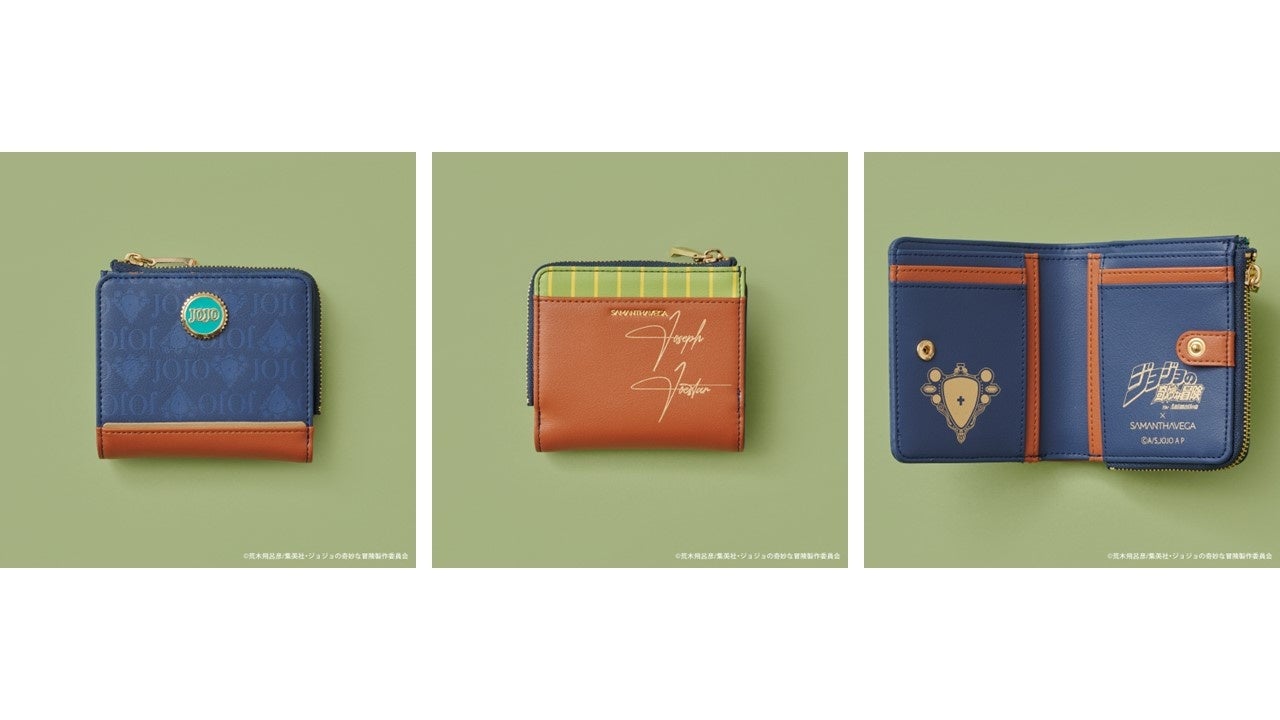 バッグのデザインとリンクした折財布は、裏面に「ジョセフ・ジョースター」のサインをプリント。