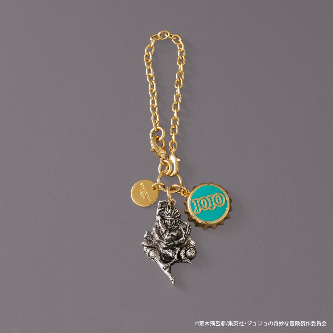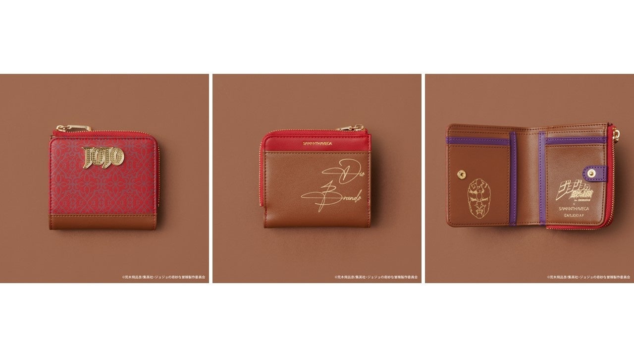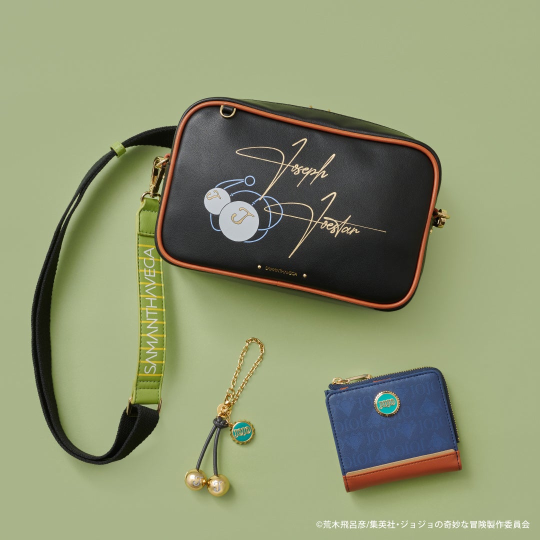 物語に登場する「ジョナサン・ジョースター」、「ディオ・ブランドー」、「ジョセフ・ジョースター」、「シーザー・A・ツェペリ」、「カーズ」の5キャラクターそれぞれをイメージしたバッグ、折財布、バッグチャームと、物語のキーアイテムでもある「石仮面」、「エイジャの赤石」をモチーフにしたバッグチャームの全17アイテムがラインナップ。