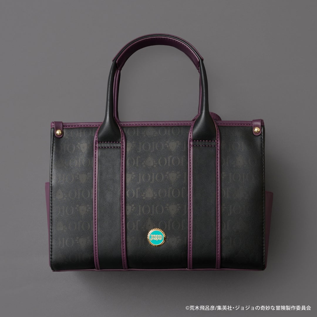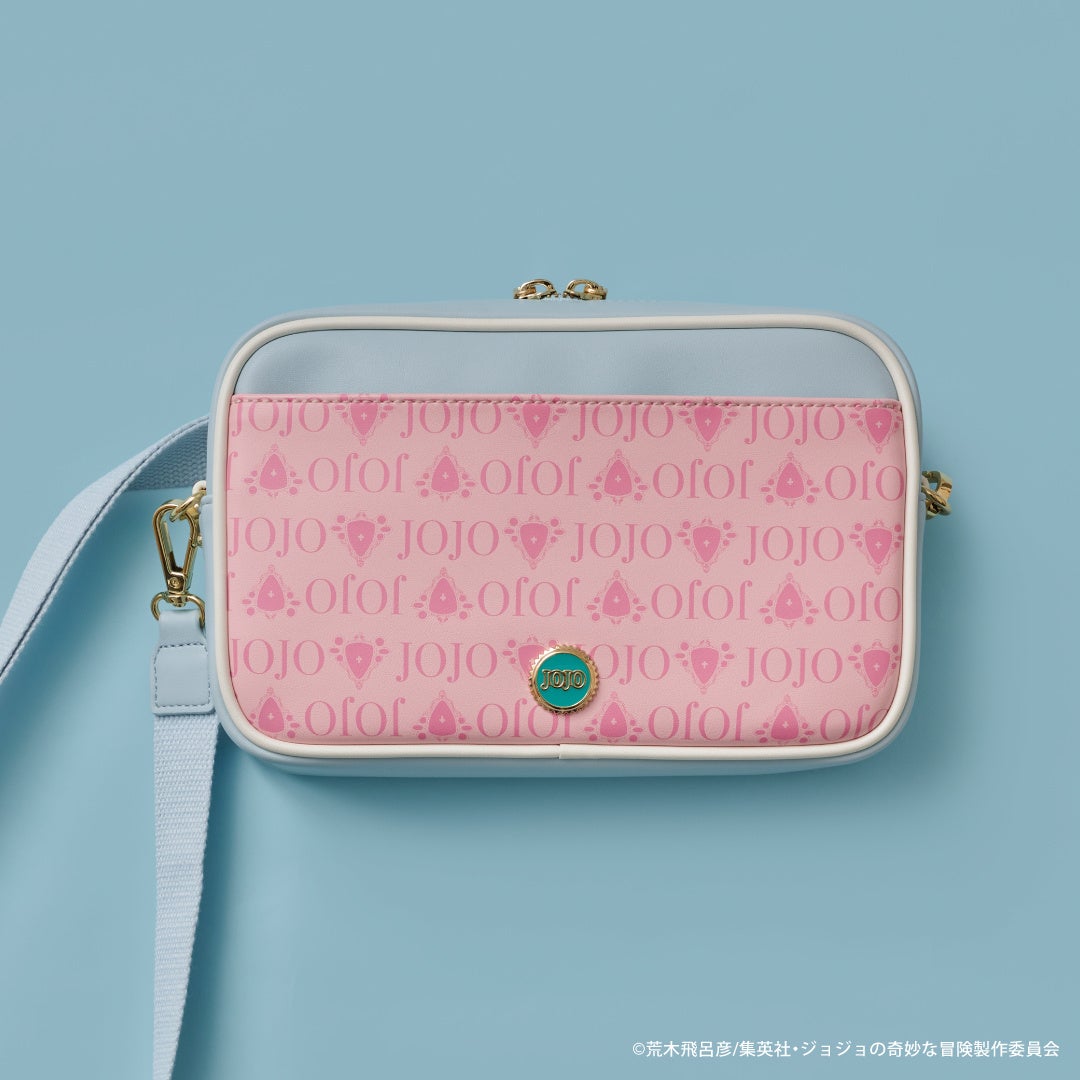 バッグと折財布全体には、“JOJO”のロゴと物語に登場する「エイジャの赤石」の総柄をプリント。