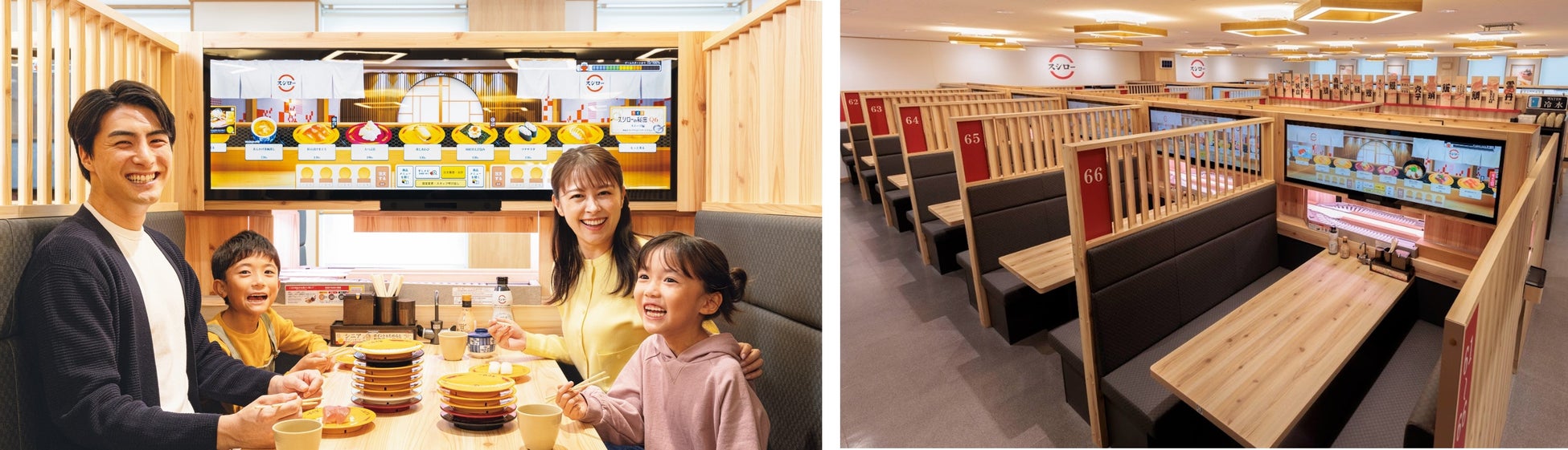 デザインコンセプトは“ディスプレイ越しに広がるもうひとつのスシローの世界”!おすしが主役の舞台の幕が開くイメージです。