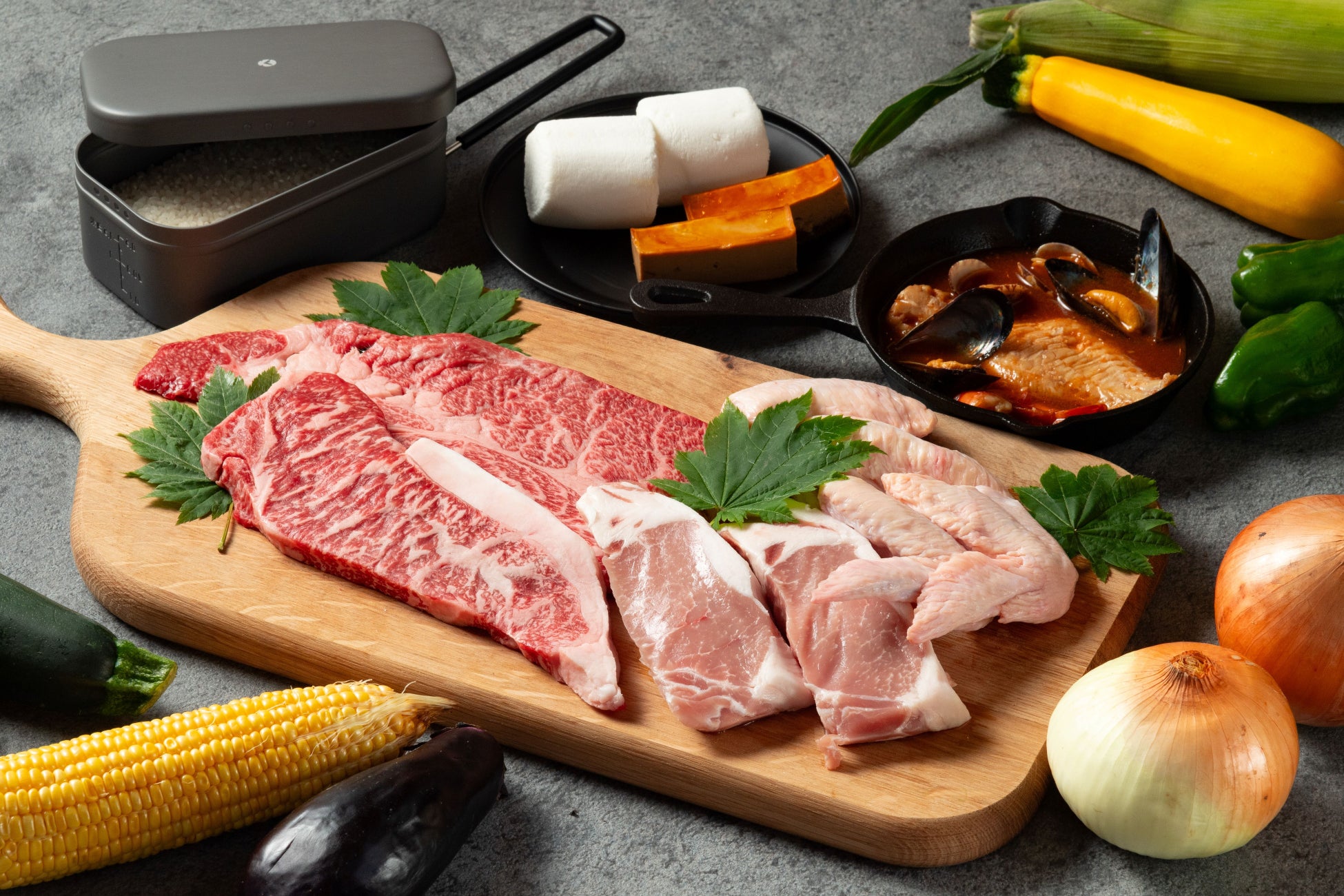 夕食は幻の段戸牛ステーキを贅沢にいただくグランピングBBQの他、お持ち込みでのオリジナルBBQもお選びいただけます。