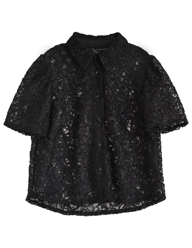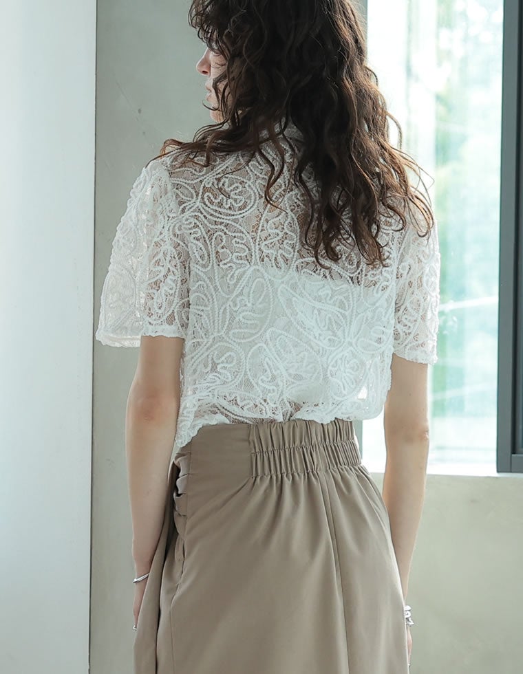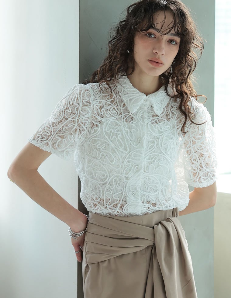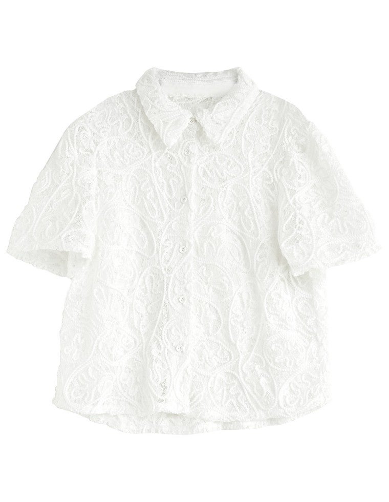 エンブロイダリーレースを贅沢に使用したクロップド丈の半袖シャツ。