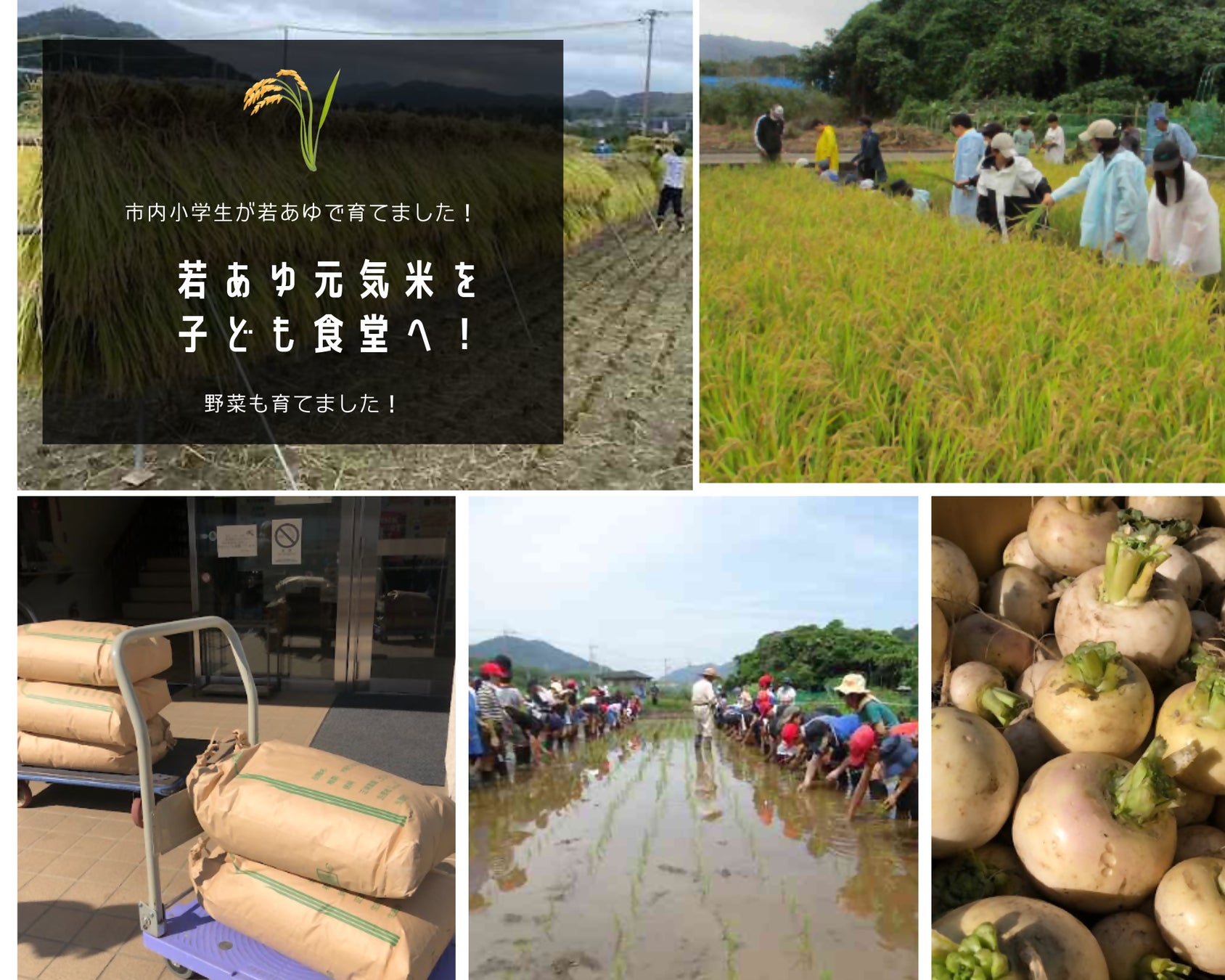 ・収穫米「若あゆ元気米」は子どもたちのためのフードドライブへ