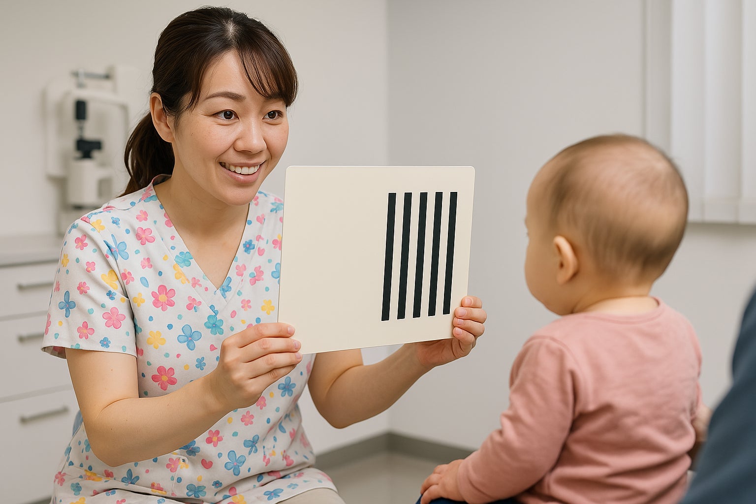 ※2 TAC(Teller Acuity Card)を使用した、幼児や肢体不自由児の視力を測定する検査。縞模様に目がいく「反射」を利用して視力を測定。