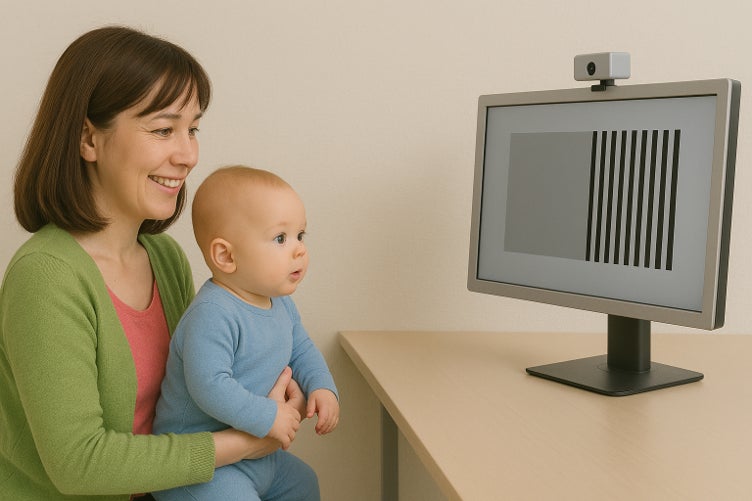 開発する検査機器はモニター画面やタブレット端末のような形態を想定しており、機械をのぞき込むといった動作が不要で乳幼児でも検査の精度が確保できる機器の開発を目指します。