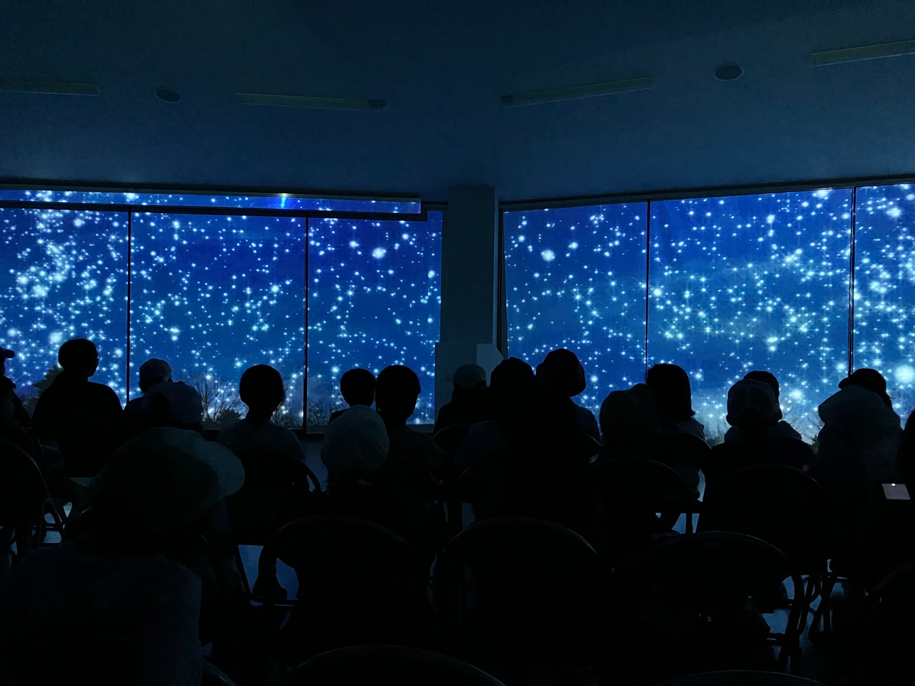 屋内ホールのスクリーンに投影した星空の観察体験を行います。
