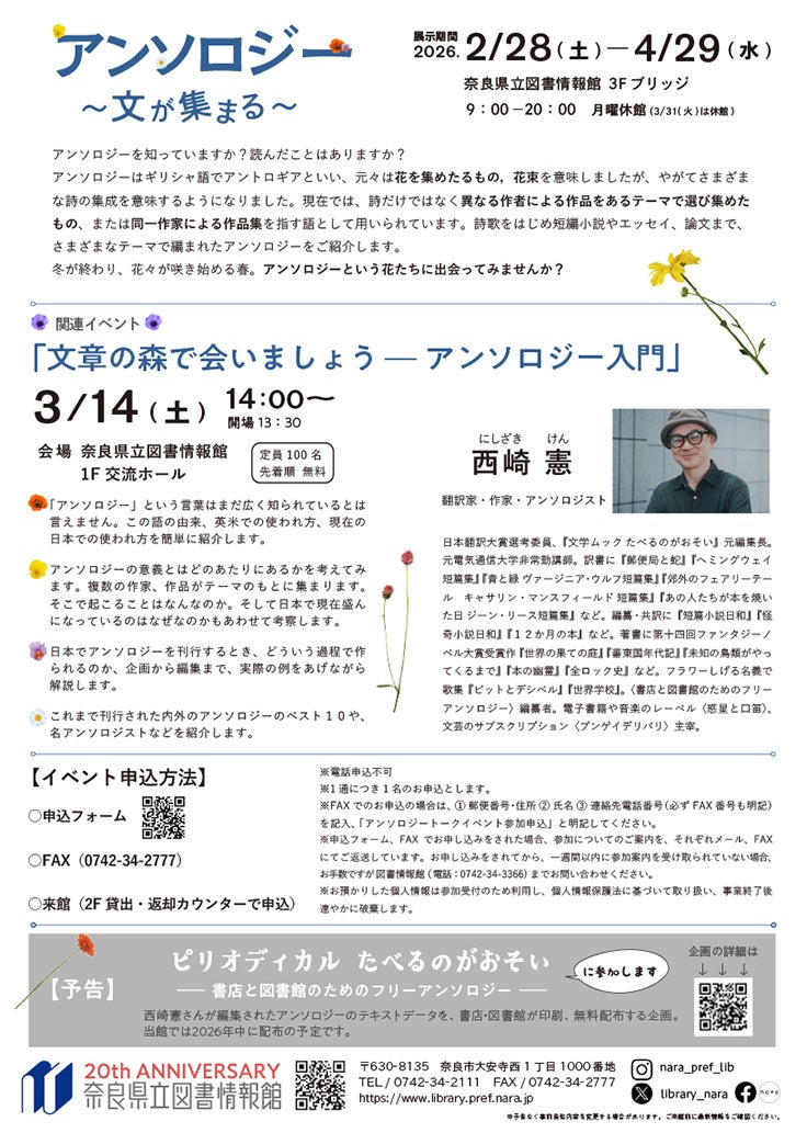奈良県立図書情報館 図書企画展「アンソロジー 文が集まる」開催
