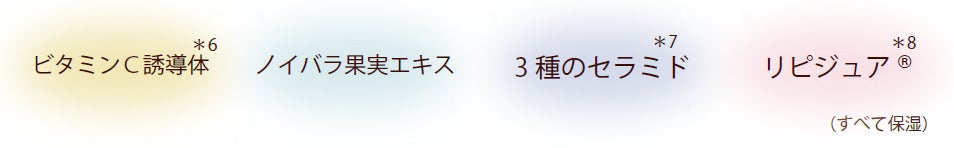 *1 仕上がり効果粉末を除く成分 *4 シリカ *5(エイコサン二酸/テトラデカン二酸)ポリグリセリル-10、スクワラン *6 リン酸アスコルビルMg *7 セラミドNG、セラミドNP、セラミドAP *8 ポリクオタニウム-51