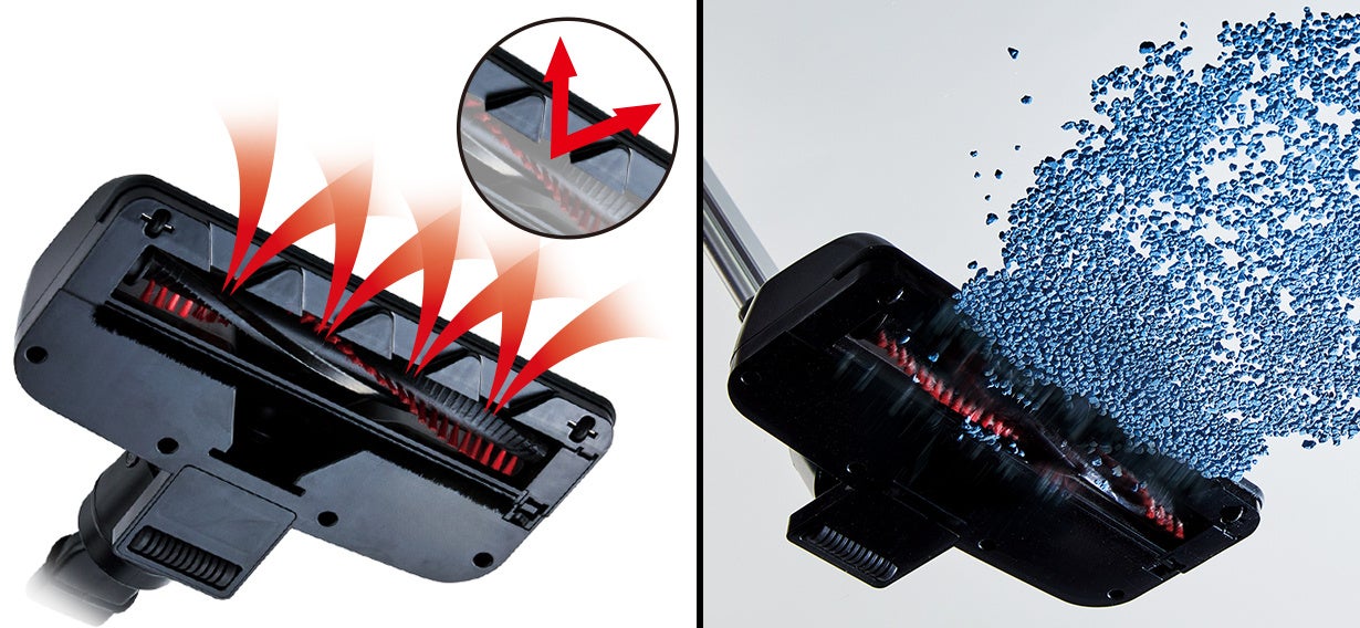 従来モデルにはなかった高速回転モーター搭載の回転ブラシ付き電動パワーヘッドは、フローリングはもちろん、カーペットの中に入り込んだゴミまでしっかりキャッチ。