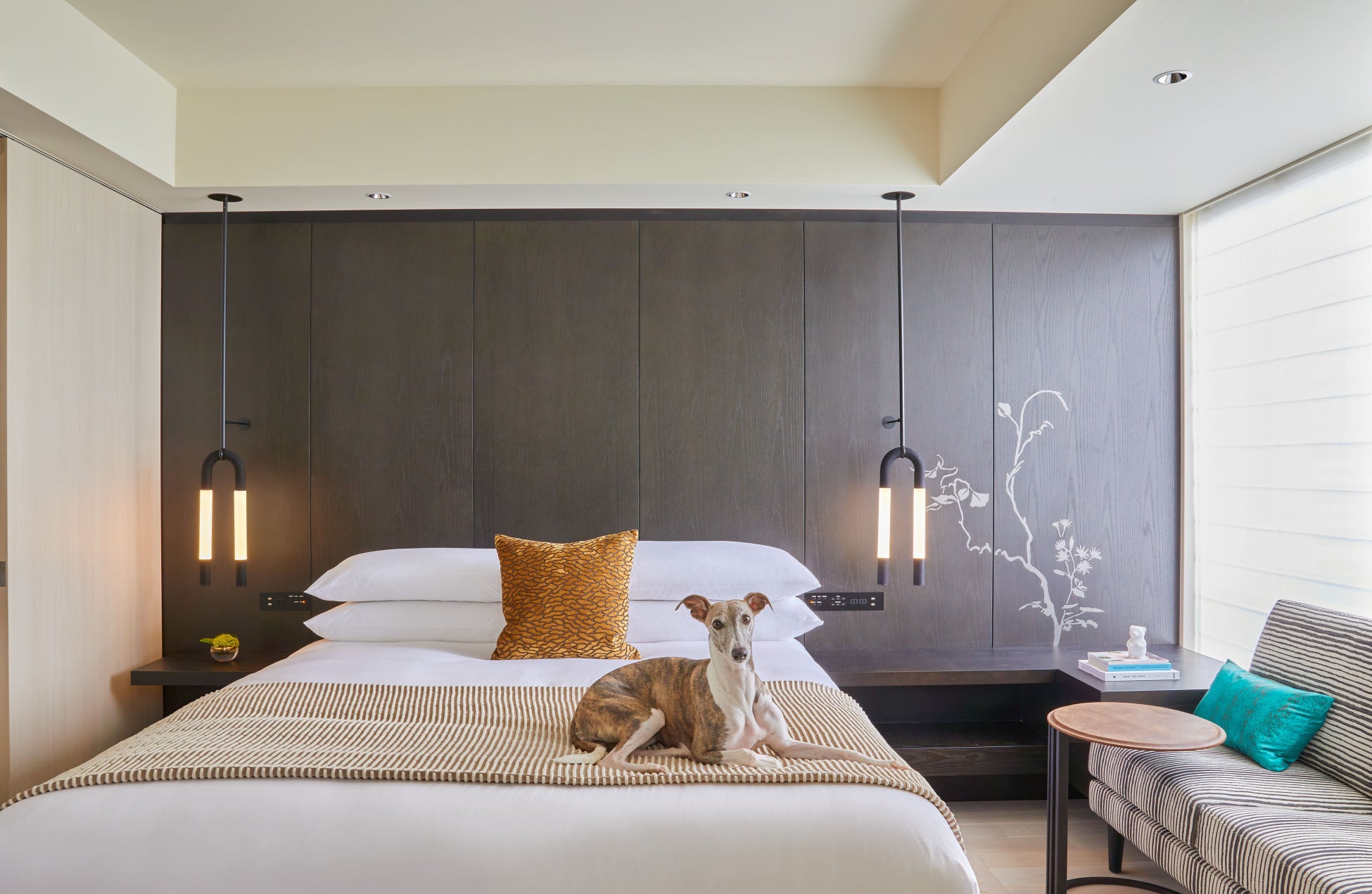 “とんでもなくパーソナルな体験”をお届けするラグジュアリーライフスタイルホテル「キンプトン新宿東京」では、lululemon製ヨガマットをお部屋にご用意。ゆったりとリラックスできる深めのバスタブやレインシャワーを備えたバスルーム、ウェルネスへの配慮が行きどといた空間で、自分時間に“没入”するには最適な環境です。6月からは、ご滞在中のお客様のお昼寝タイムを充実させる「ナップアワー」のサービスが登場。毎日16~17時の間に、フロントデスクに「ナップアワー!」とお伝えいただくと、お昼寝に役立つ特別なアメニティを無料でお届けいたします。アメニティは、ワンちゃん、猫ちゃん用のご用意もあり、大切なペットとご一緒に疲れを癒していただけます。