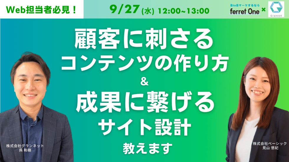 ベーシック、9/27(水)12時よりグランネット社主催のセミナー「【Web担当者必見】顧客に刺さるコンテンツの作り方と正しく成果に繋げるためのサイト設計教えます!」に登壇