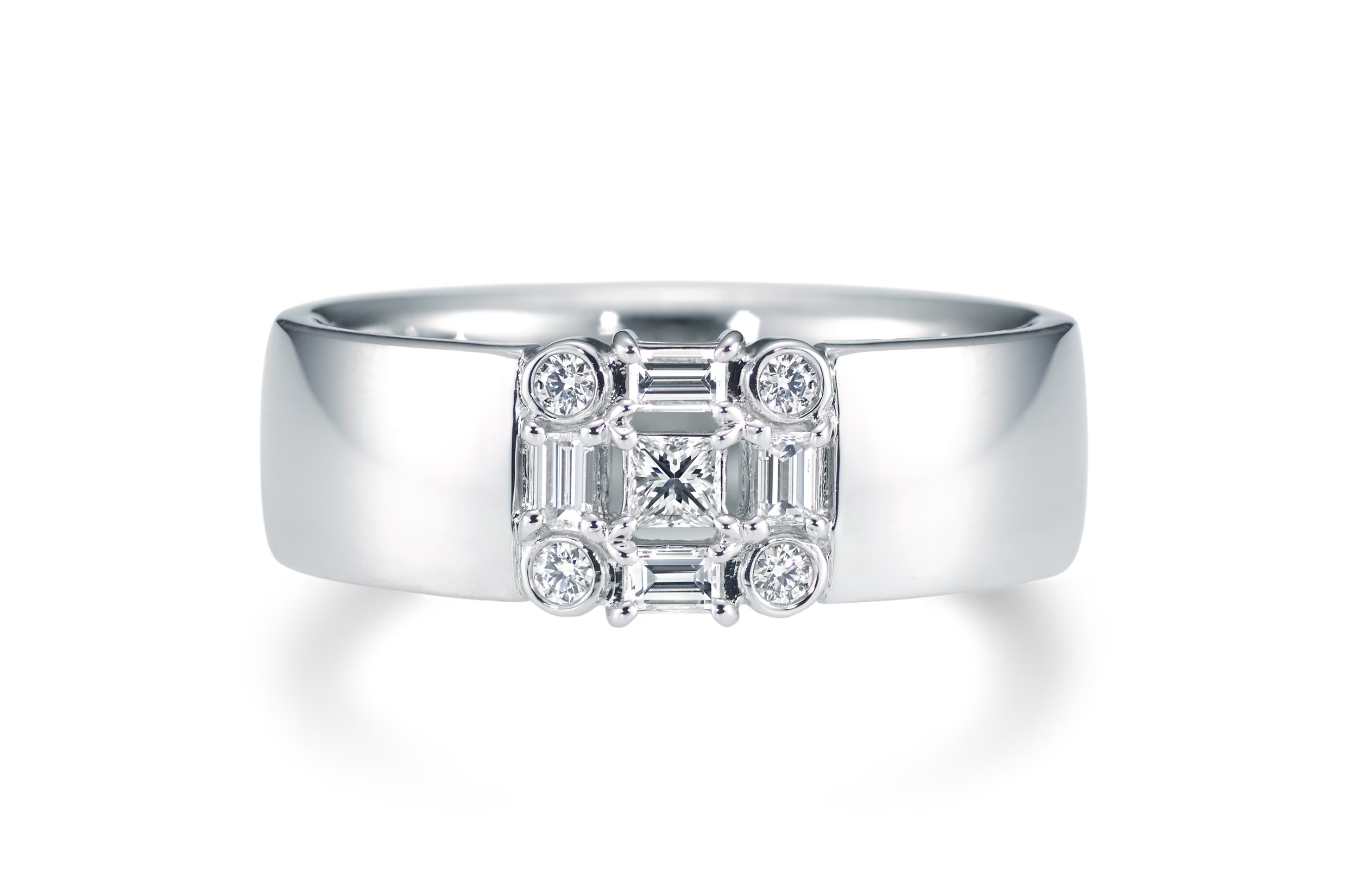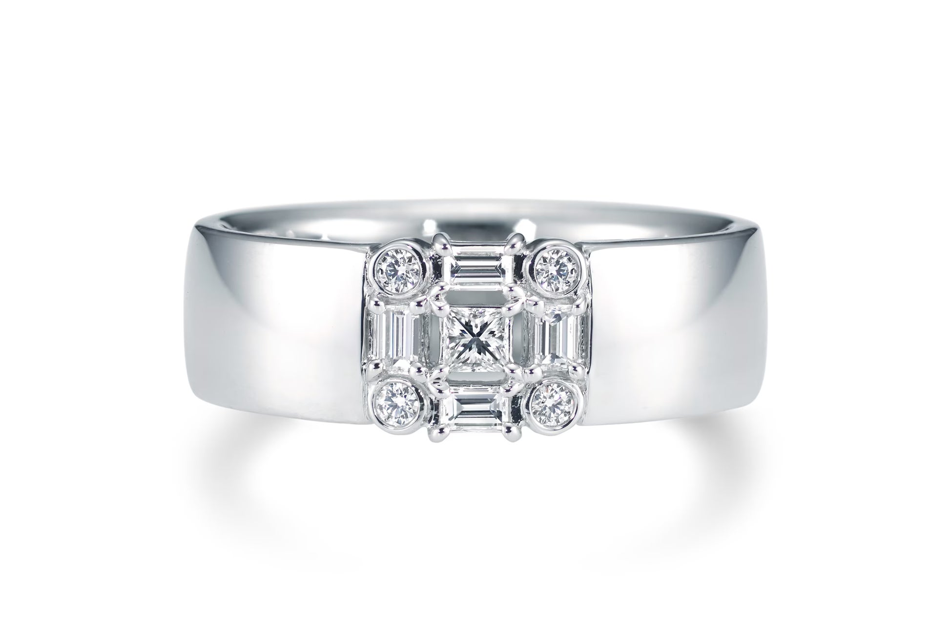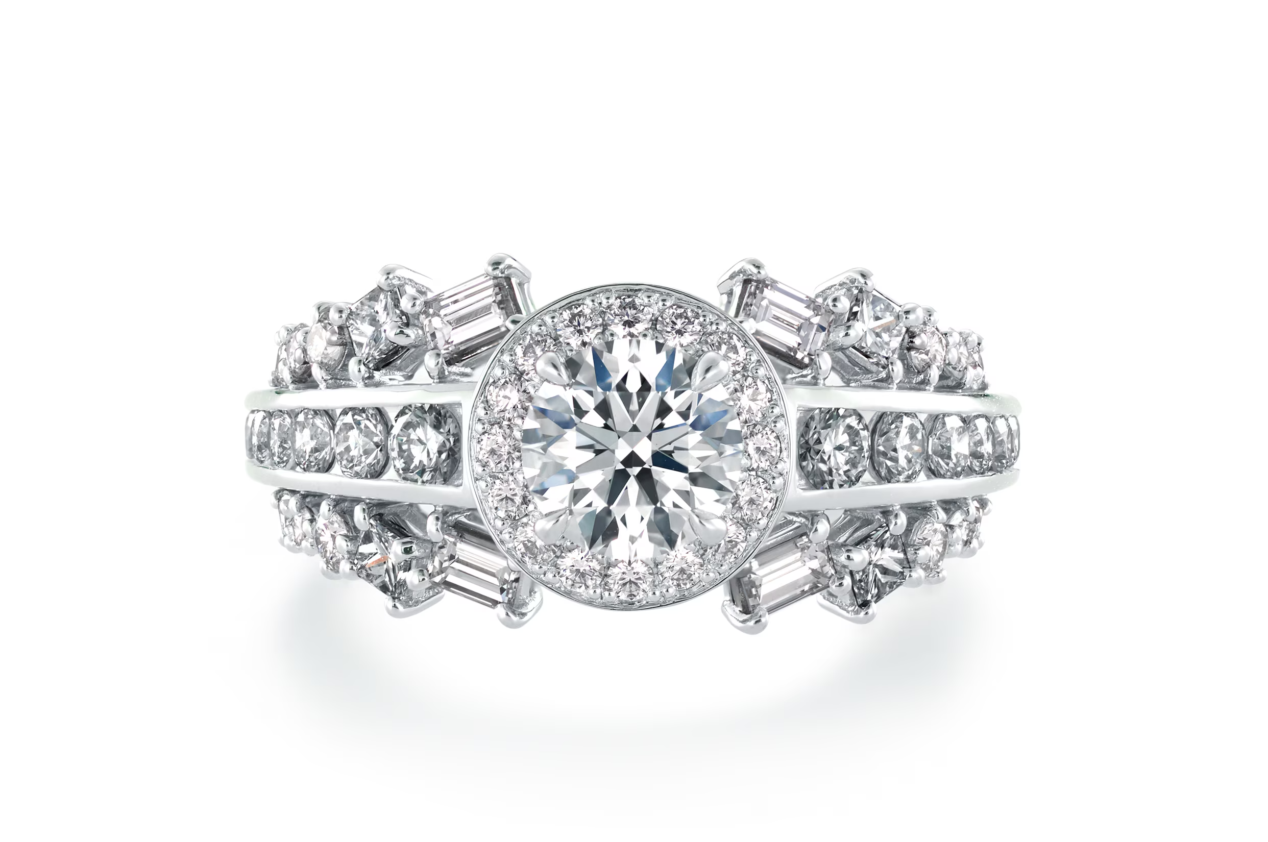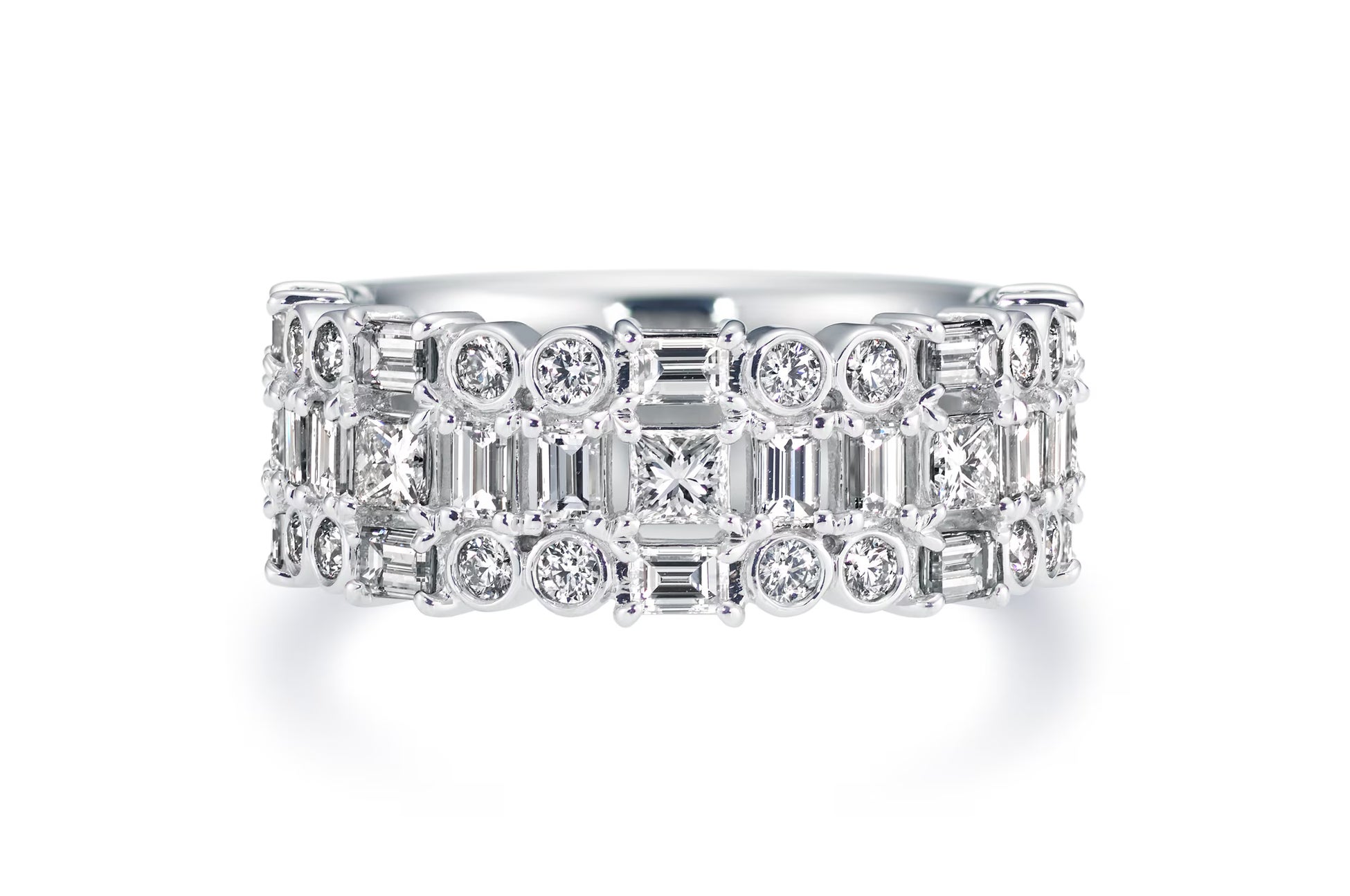 セッティングに高低差を出すことで立体感があり、ダイヤモンドの色々な表情を感じることができる。