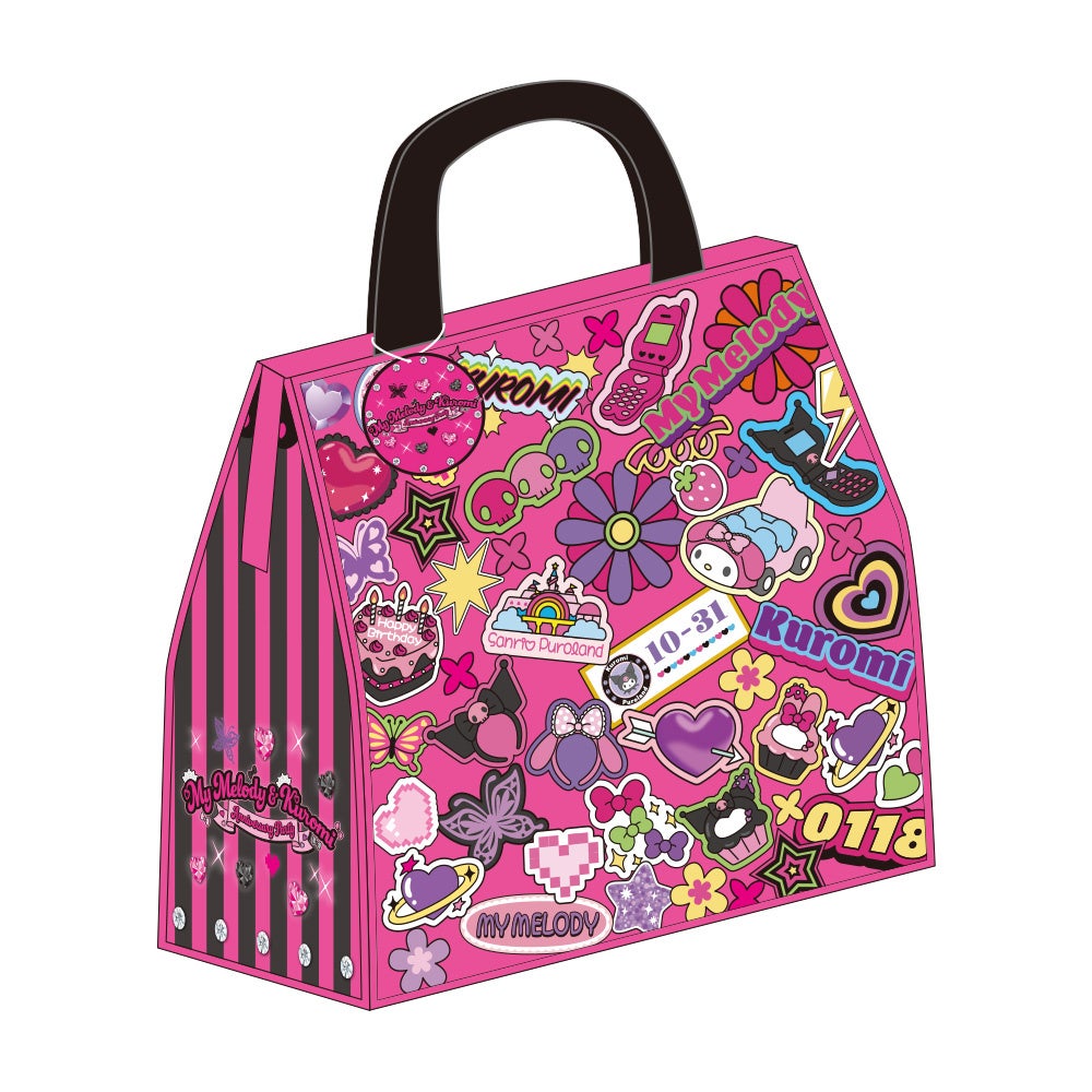 マイメロディのピンクとクロミの黒を取り入れたキュートでクールなデザインのショッピングバッグやバルーン、ボールペンセットを販売。