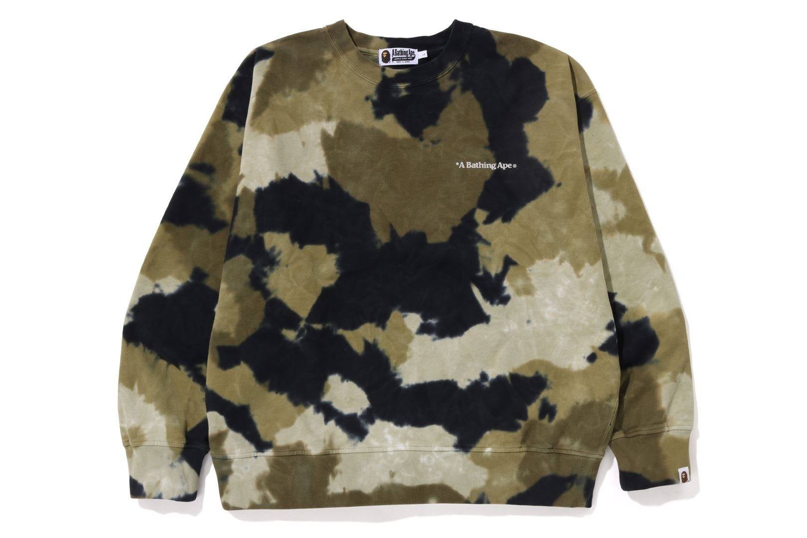 「注染」とは、明治初期に生まれた染め技法の一つ。当時の生活雑貨の定番だった手ぬぐいや、夏の浴衣などを染めるための染め技法として、京都を中心に広がっていきました。生地の上から下へと染料を注ぎ、糸自体を染めるため、ムラ染めやタイダイ染めとは違う、注染独特の“ぼかし”によるグラデーションを表現できるのが特徴。この伝統技術を使い、BAPE®らしいカモフラージュを作りました。