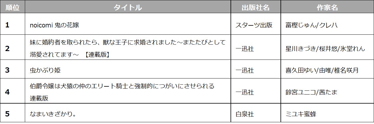 noicomi鬼の花嫁 SPY×FAMILY など話題沸騰中の作品がランクイン「コミックシーモア 2022年上半期ランキング」を発表!!