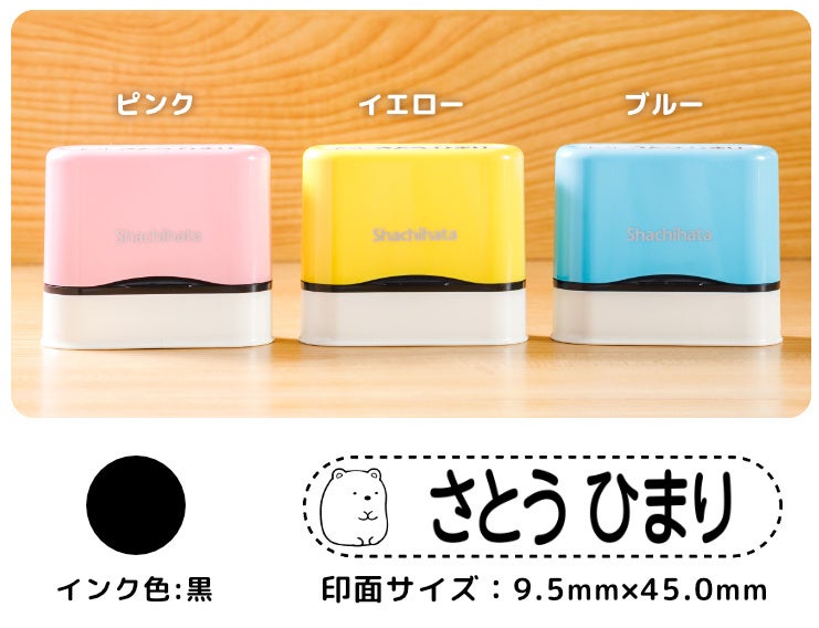 しろくま、ぺんぎん?、とんかつ、ねこ、とかげなど選べるイラストは10種類。布やプラスチックなどあらゆる素材にポンポン押せて洗濯や洗い物もOK。とっても便利な一行タイプのネームスタンプです。