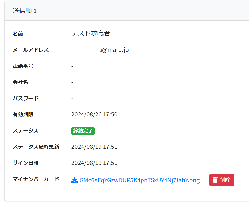 締結書類とは別に身分証明書といったデータを相手方から回収できる機能です