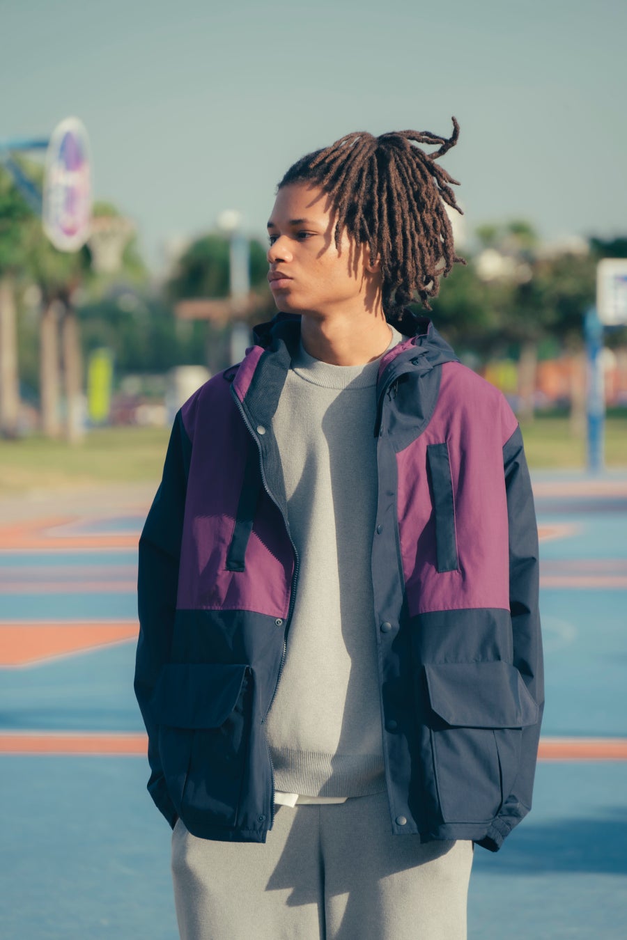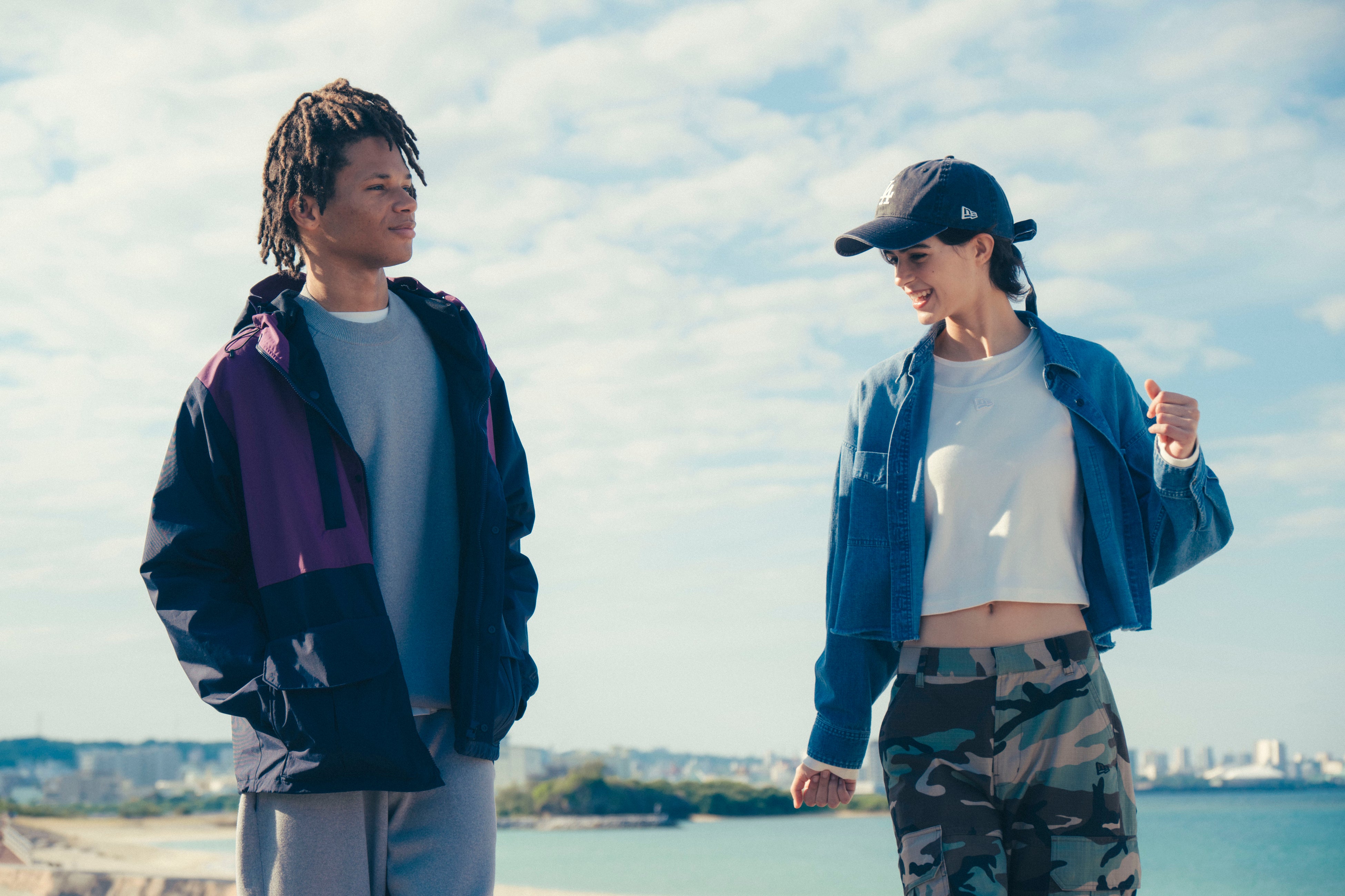 ユニセックスアイテムとして、リネンのセットアップや、カラーブロックのマリンパーカー、グラデー