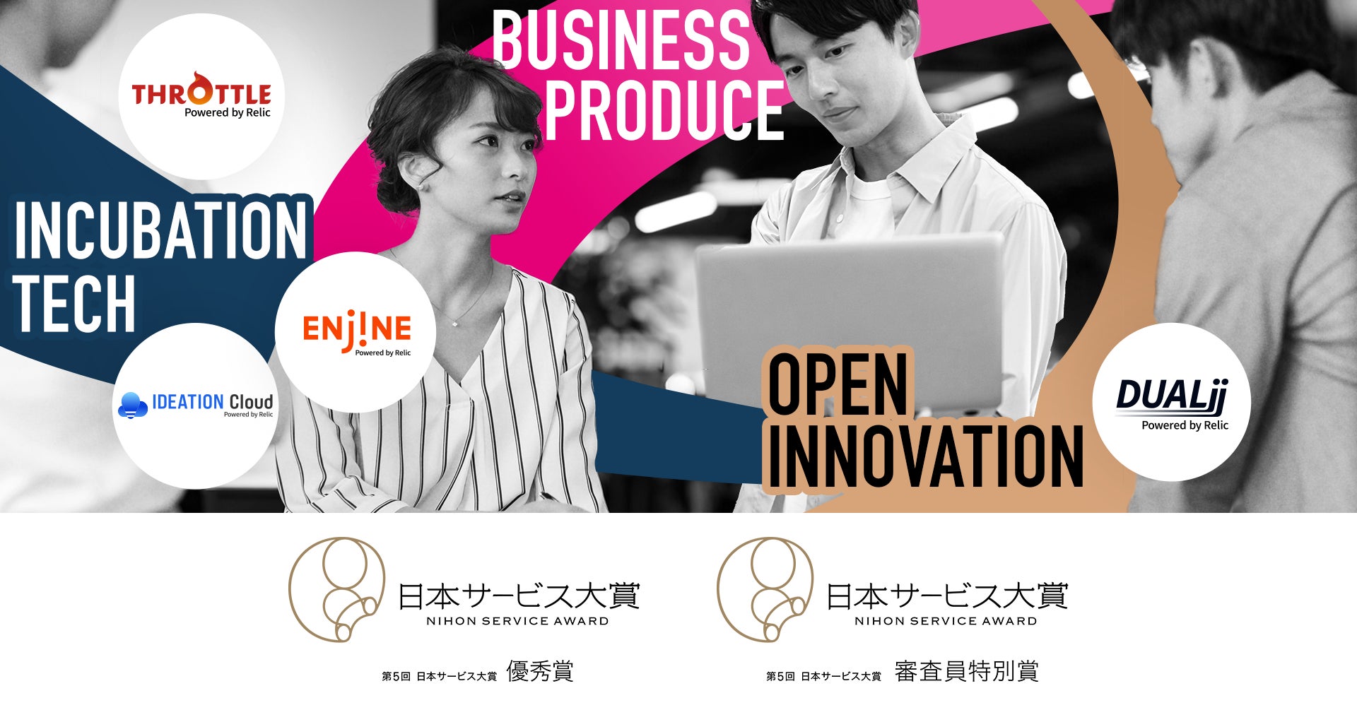 Relicホールディングスの中核事業会社であるRelicは、日本企業の新規事業開発やイノベーション創出を支援する「事業共創カンパニー」として、 世界でも類を見ない新規事業開発に特化したSaaS型プラットフォームを提供する「インキュベーションテック事業」、 総合的かつ一気通貫で新規事業やイノベーション創出を支援する「事業プロデュース/新規事業開発支援事業」、スタートアップ企業への投資や大企業との共同事業/JVなどを通じてイノベーションを共創する「オープンイノベーション事業」という3つの柱となる事業を統合的に展開しています。新規事業開発の支援や共創において国内シェアNo.1(※5)を誇り、これまで5,000社以上の新規事業開発に携わってきた実績も含め、唯⼀無⼆の価値と意義、そして業界トップの規模や成⻑を実現しているリーディングカンパニーです。従業員は350名を超え、全国17の都道府県へ拠点を開設し、日本全国での新規事業開発支援・共創を実現しています。