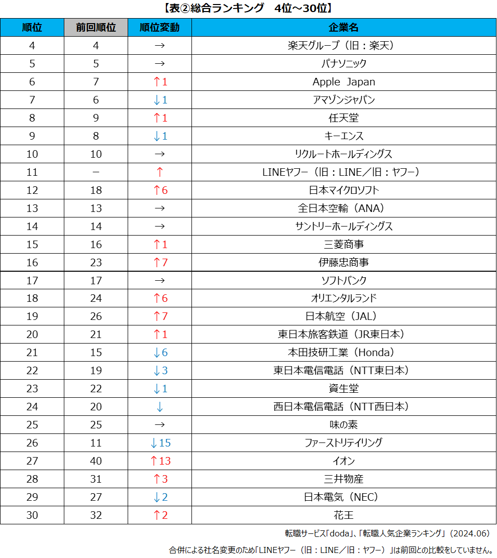 「転職人気企業ランキング2024」結果詳細:https://doda.jp/guide/popular/