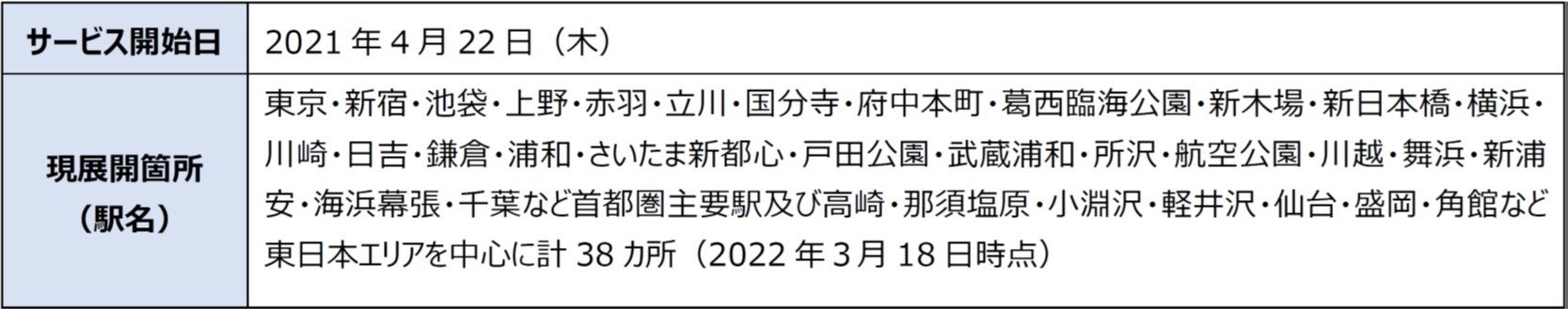 ①引き続き、首都圏ターミナル駅やJR東日本グループ以外の施設を含む観光・イベント需要が高い場所などを中心に、サービス展開箇所の拡大を進めます。