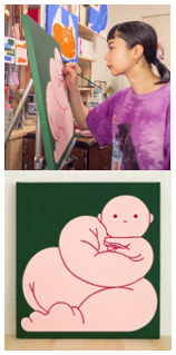 2020年からイラストレーター・アーティストとして活動を始める。幼少の頃から習っていたモダンダンスやジャズダンスの影響で身体を使った表現に関心を持ち、身体の伸縮によって生まれる張りやシワの美しさに着目したふくよかな体型の人物を描いている。開放的なキャラクターたちがユーモラスに描かれる作品に海外からのオファーも急増。韓国でのアートフェア出展が決定するなど、その活躍を世界へと広げている。